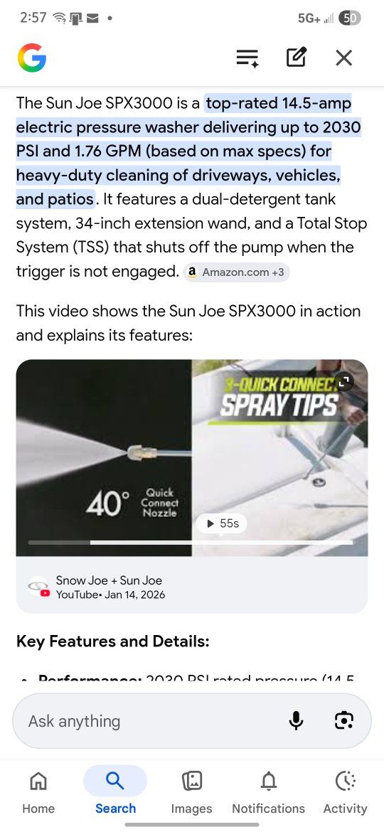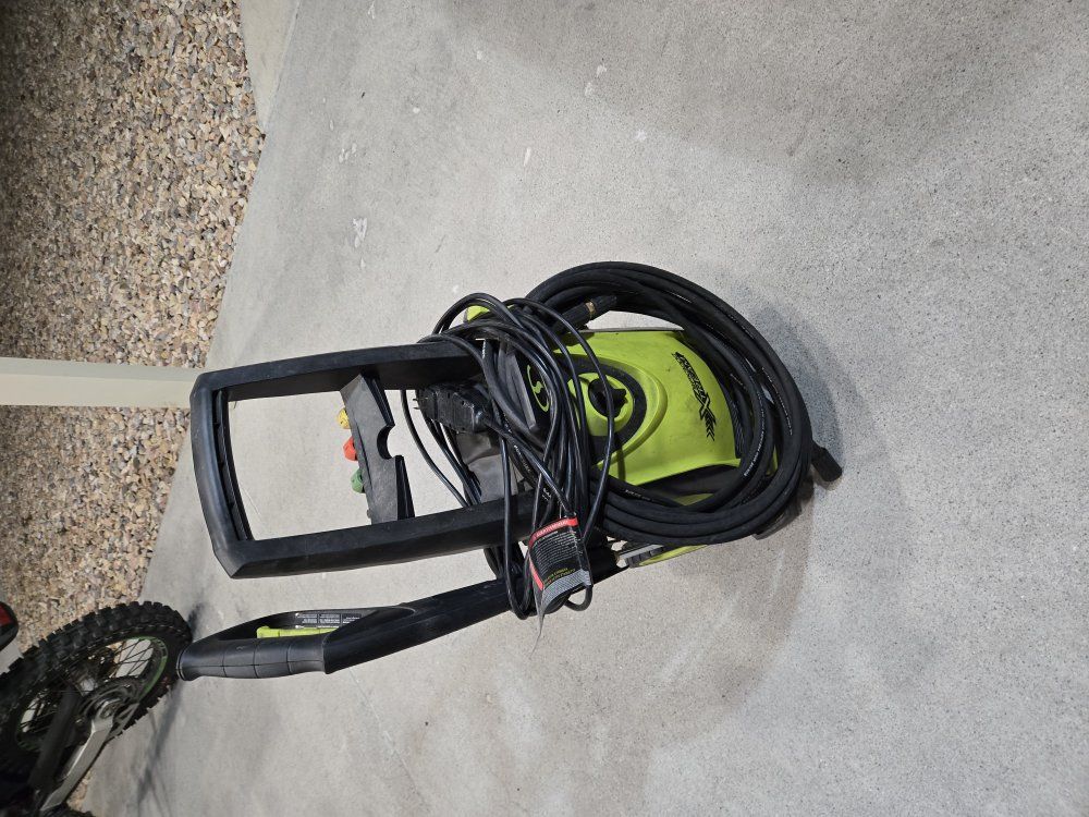 Venmo2000psi electric pressure washer. Have an extra hose for extended length. Comes with 4 nozzle attachments and a foam wash attachment.