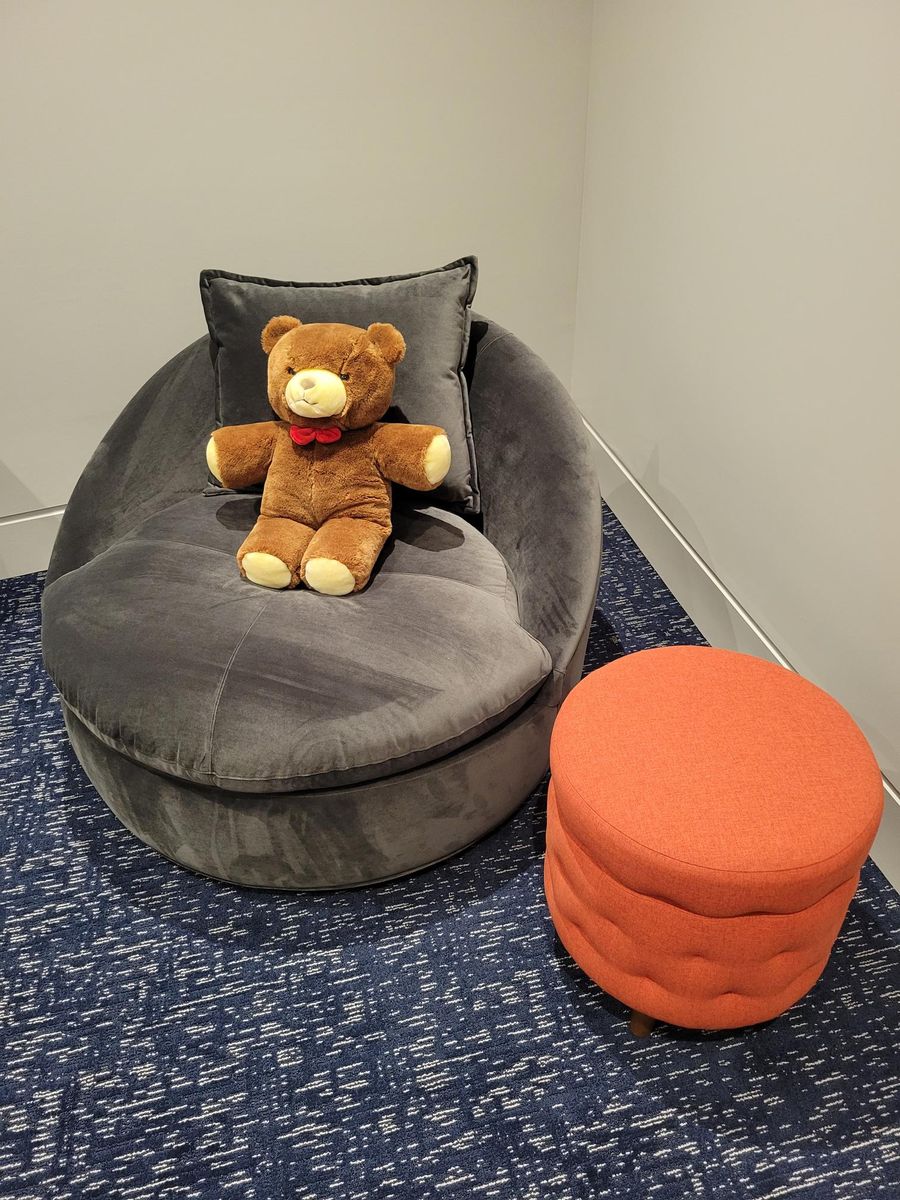 Younger Furniture Jackie Swivel chair and pouf. Great for relaxing, reading, grandchildren, teen rooms, or dorm rooms. Original owner. Like new. Chair is 43" diameter and Pouf is 17" diameter. St. George. Cash only. $375