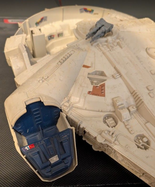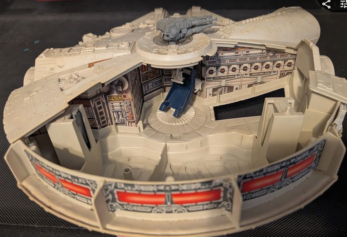 VenmoHere is a Star Wars Milenium Falcon. It is a little dirty and needs a good cleaning but has most of its parts. I know it is missing a foot and the bracket for the radar but other than that its original.