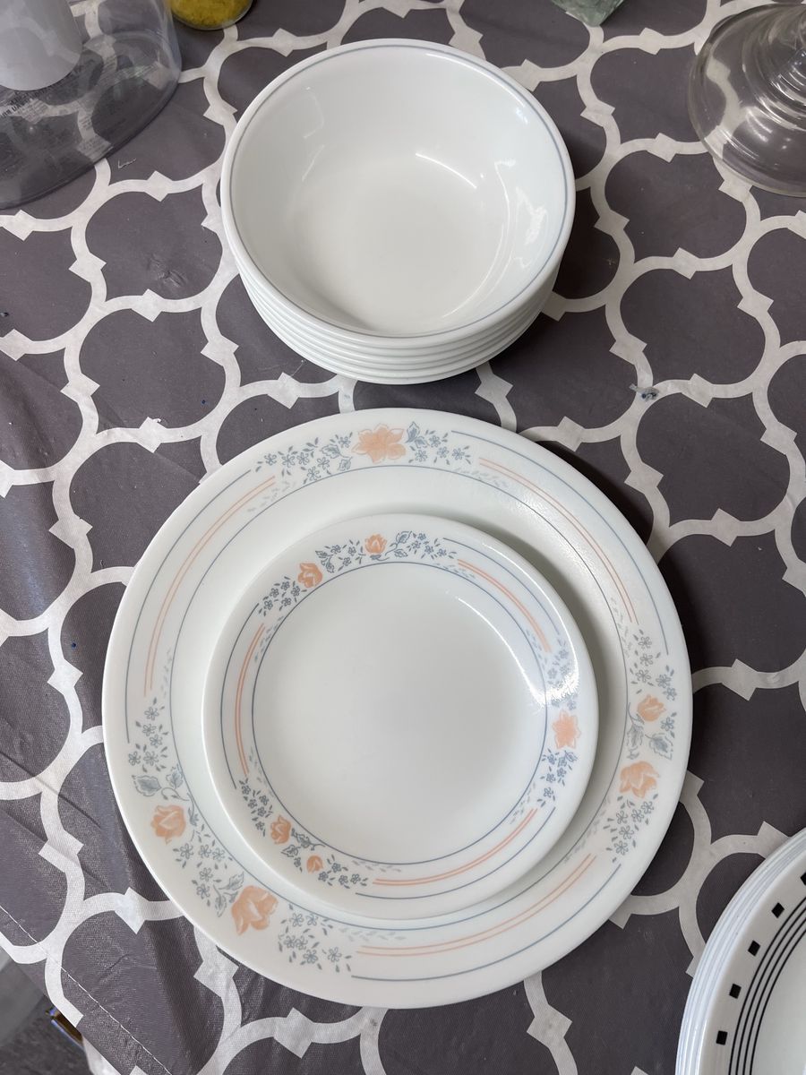 VenmoI have a set of Corelle dishes, which are a combination of two patterns, but I am selling them altogether. There are a total of 11 dinner plates, seven small plates, and nine bowls. They’re in great condition.