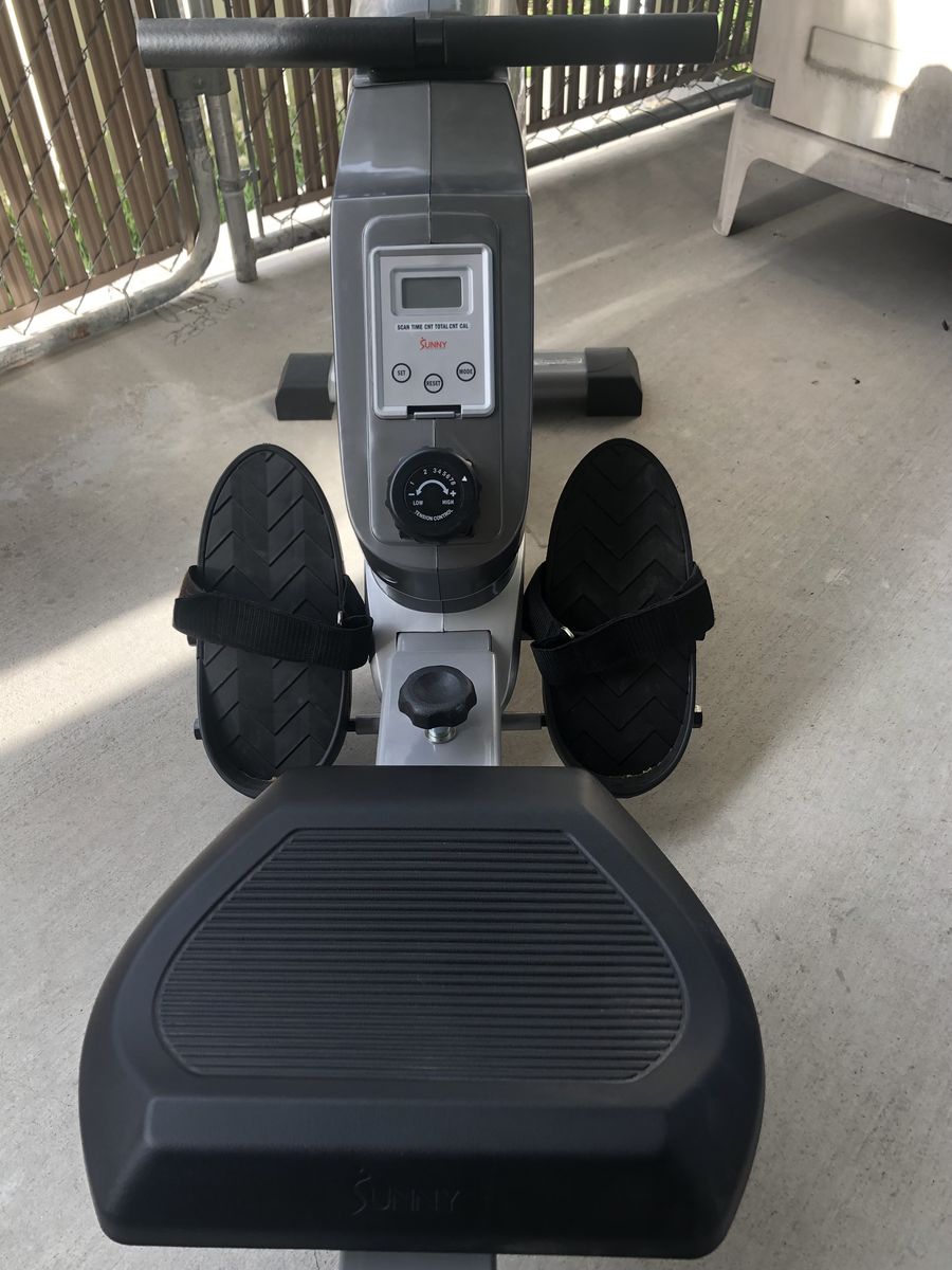 Model SF-RW5515. In Excellent Condition No Issues. No Plug In Required Very Quiet. Eight levels of resistance and includes a working monitor. Requires 2 AAA Batteries Not Included. Can tilt up to save space when not in use.