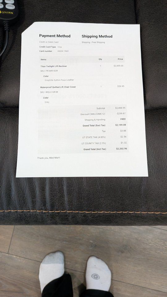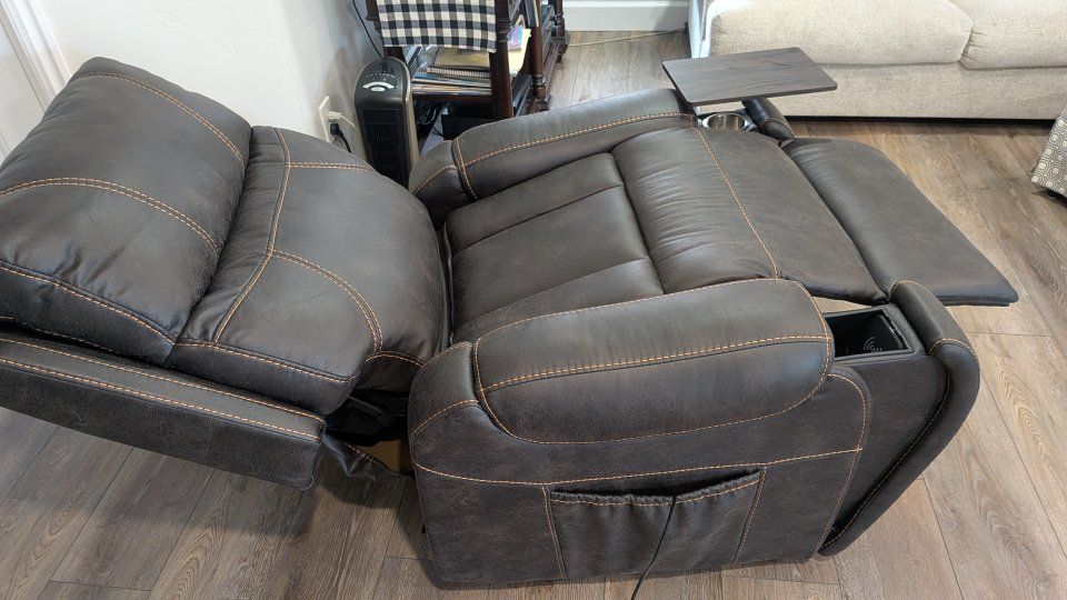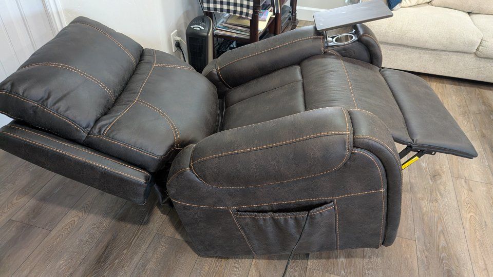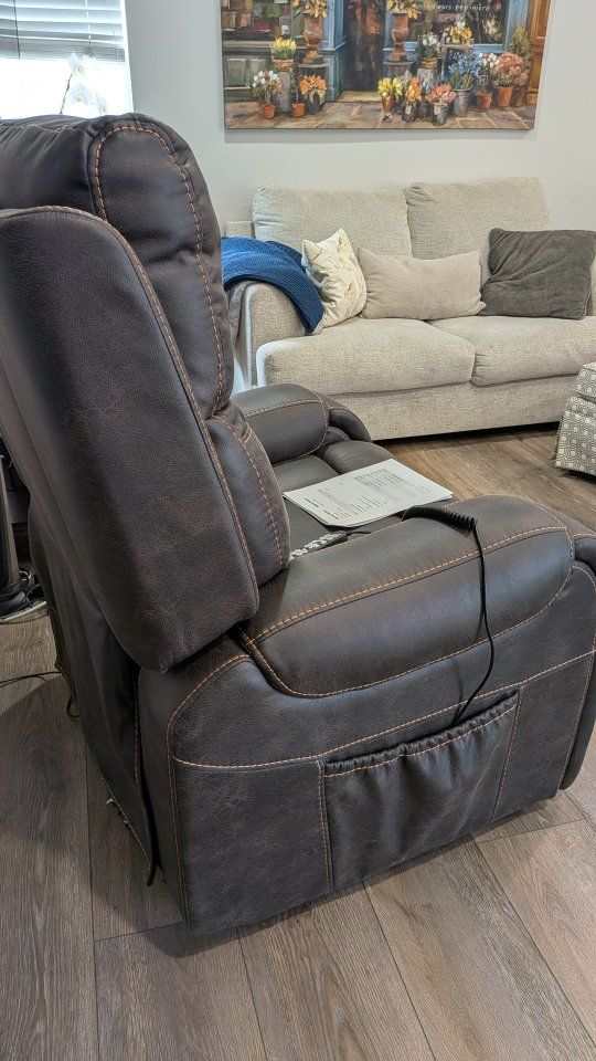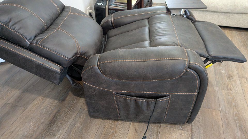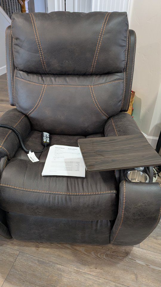Golden reclining lift chair Titan Twilight, in graphite Sutton faux leathe retails for $2,498.95. Nearly new.