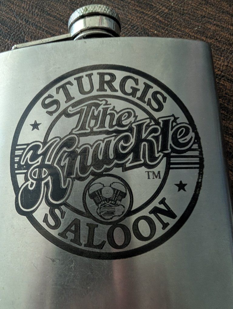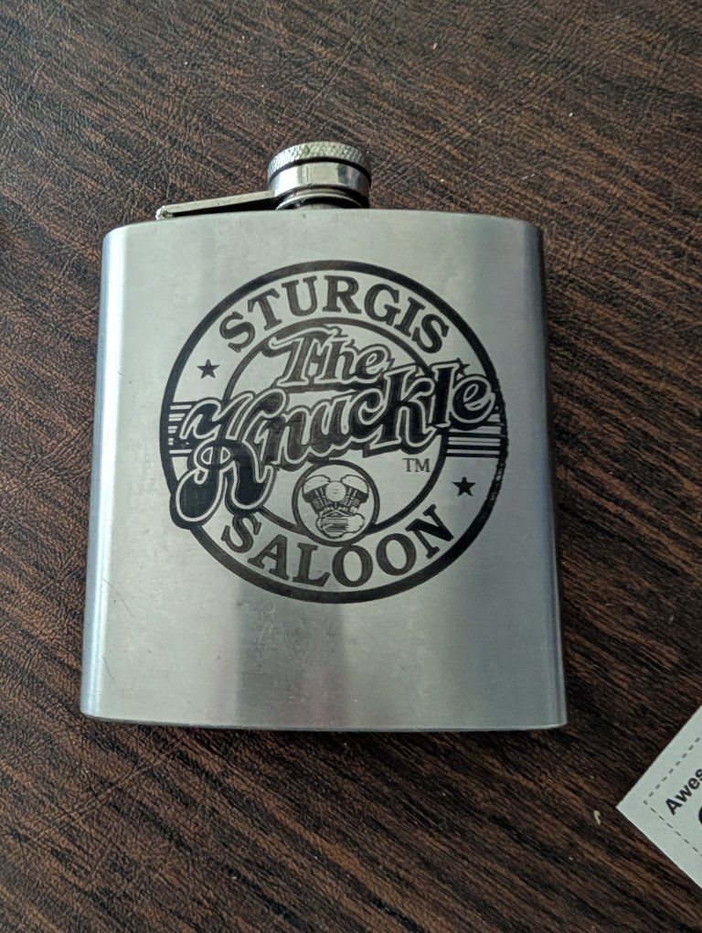 PayPalThe Knuckle Saloon Sturgis Stainless steel flask is a classic hip flask made of durable stainless steel in a sleek silver color. It is perfect for all occasions, whether you're on the go or enjoying a quiet drink at home. This set includes the flask itself, making it a convenient and stylish accessory for any bar or kitchen. 40 dollars or best offer.