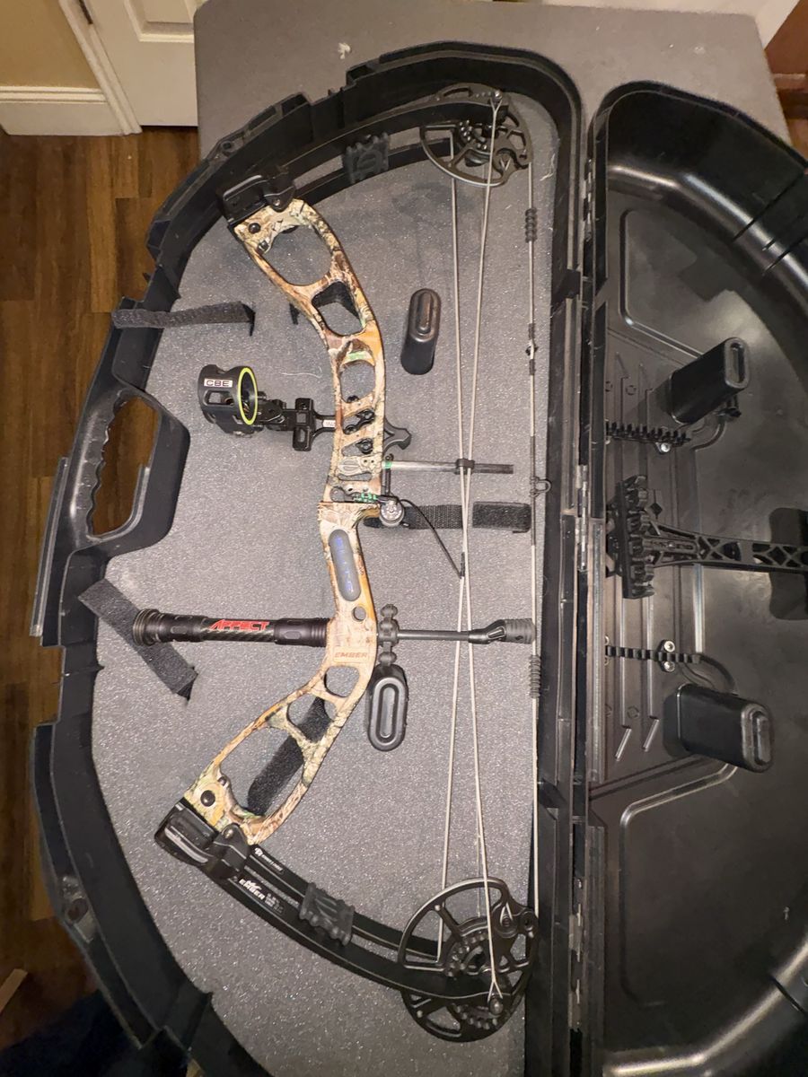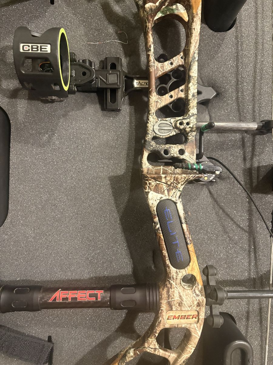Elite Ember compound bow in good condition. Great all-around bow with a wide adjustment range, perfect for beginners, youth, or anyone wanting an easy-to-shoot hunting setup.