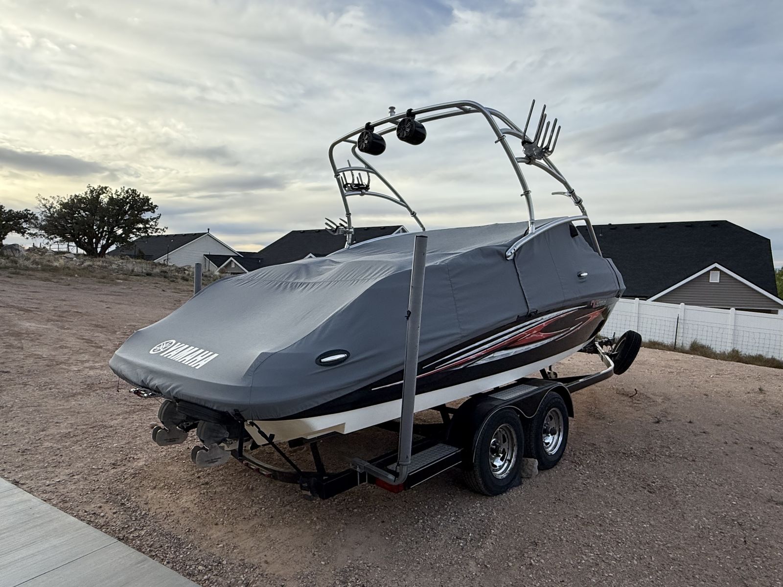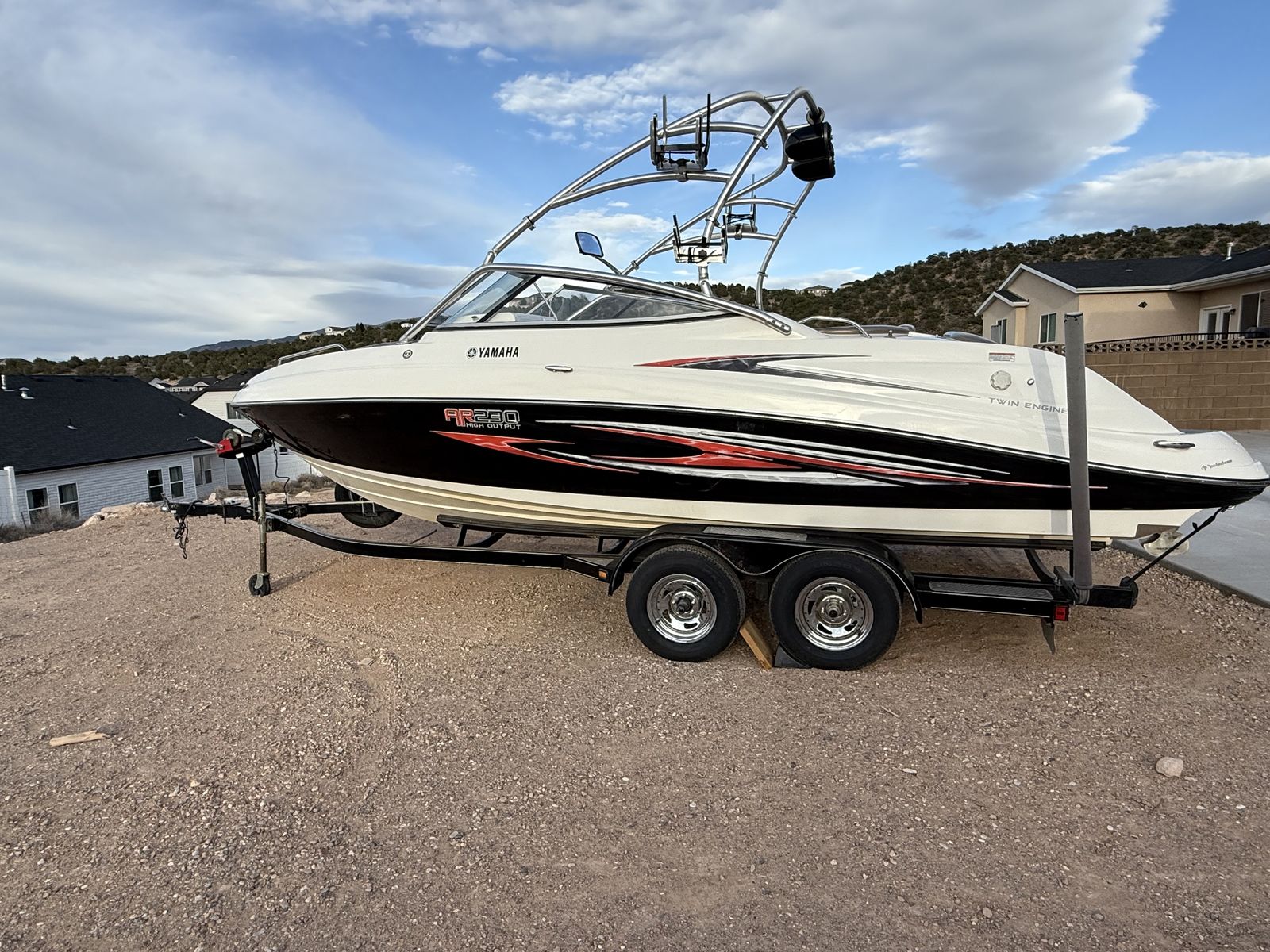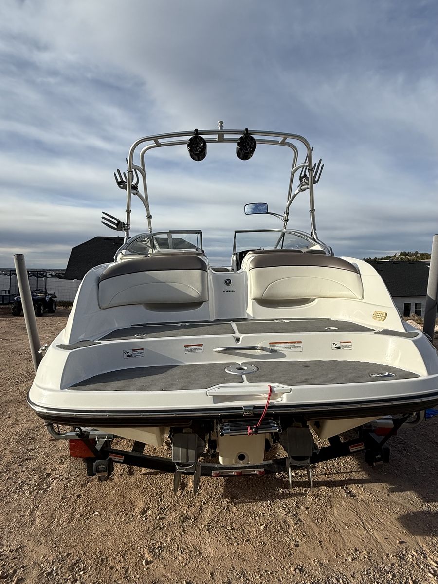 This 2007 Yamaha AR230 HO is a perfect all-around family boat. It is powered by twin Yamaha High Output jet engines (approx. 320 HP combined) which help with strong acceleration, smooth handling, and added safety with no exposed prop. This boat comfortably seats up to 10 passengers between the wraparound cockpit seating, bow seating, and a large rear swim platform for easy water access. Some key things to note are: