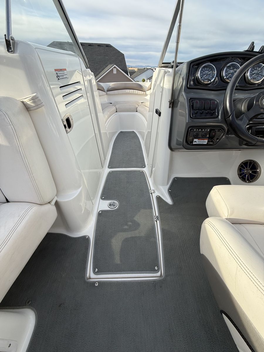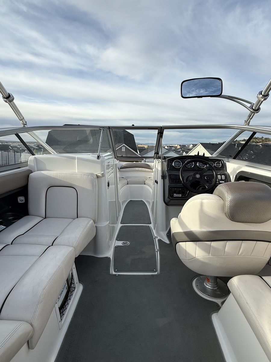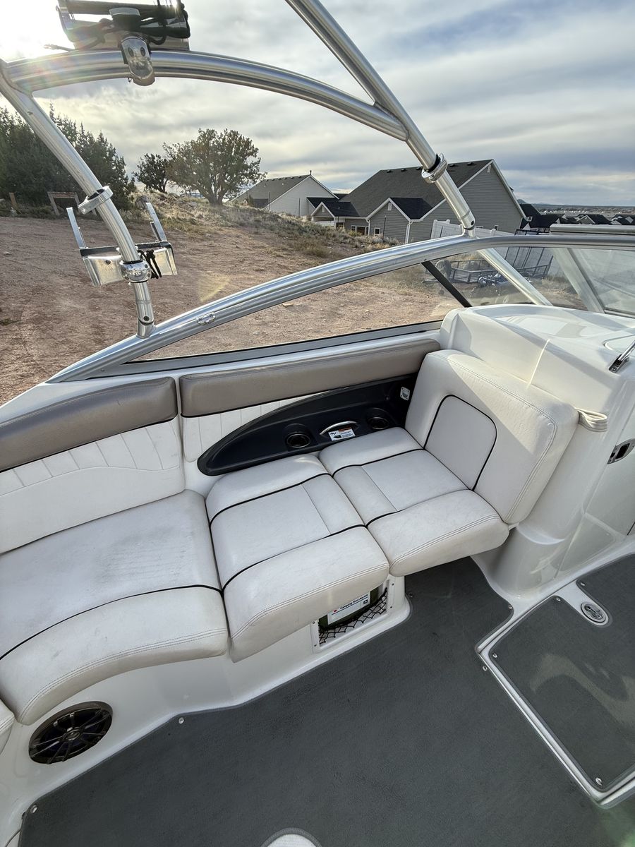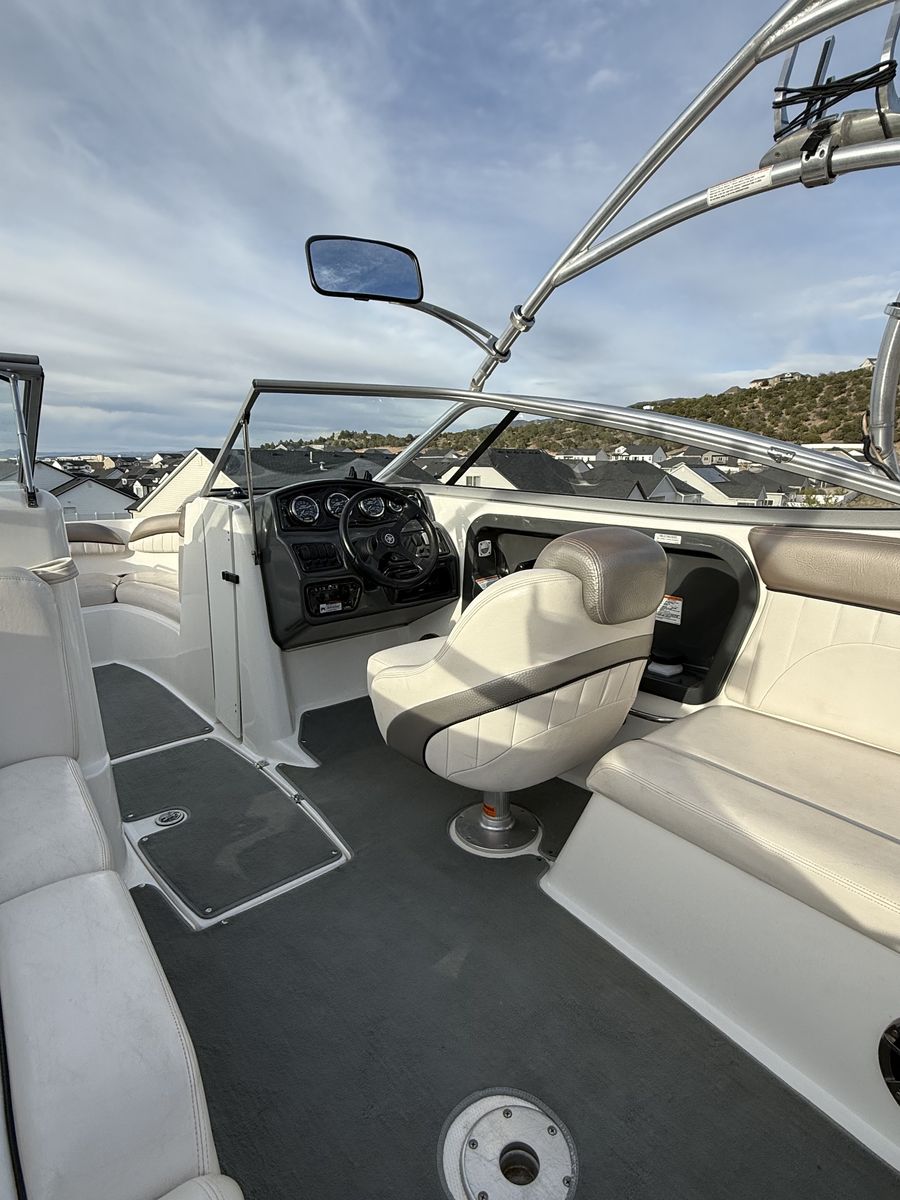 This 2007 Yamaha AR230 HO is a perfect all-around family boat. It is powered by twin Yamaha High Output jet engines (approx. 320 HP combined) which help with strong acceleration, smooth handling, and added safety with no exposed prop. This boat comfortably seats up to 10 passengers between the wraparound cockpit seating, bow seating, and a large rear swim platform for easy water access. Some key things to note are: