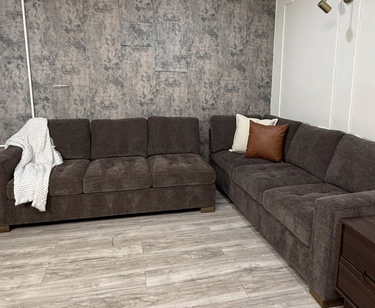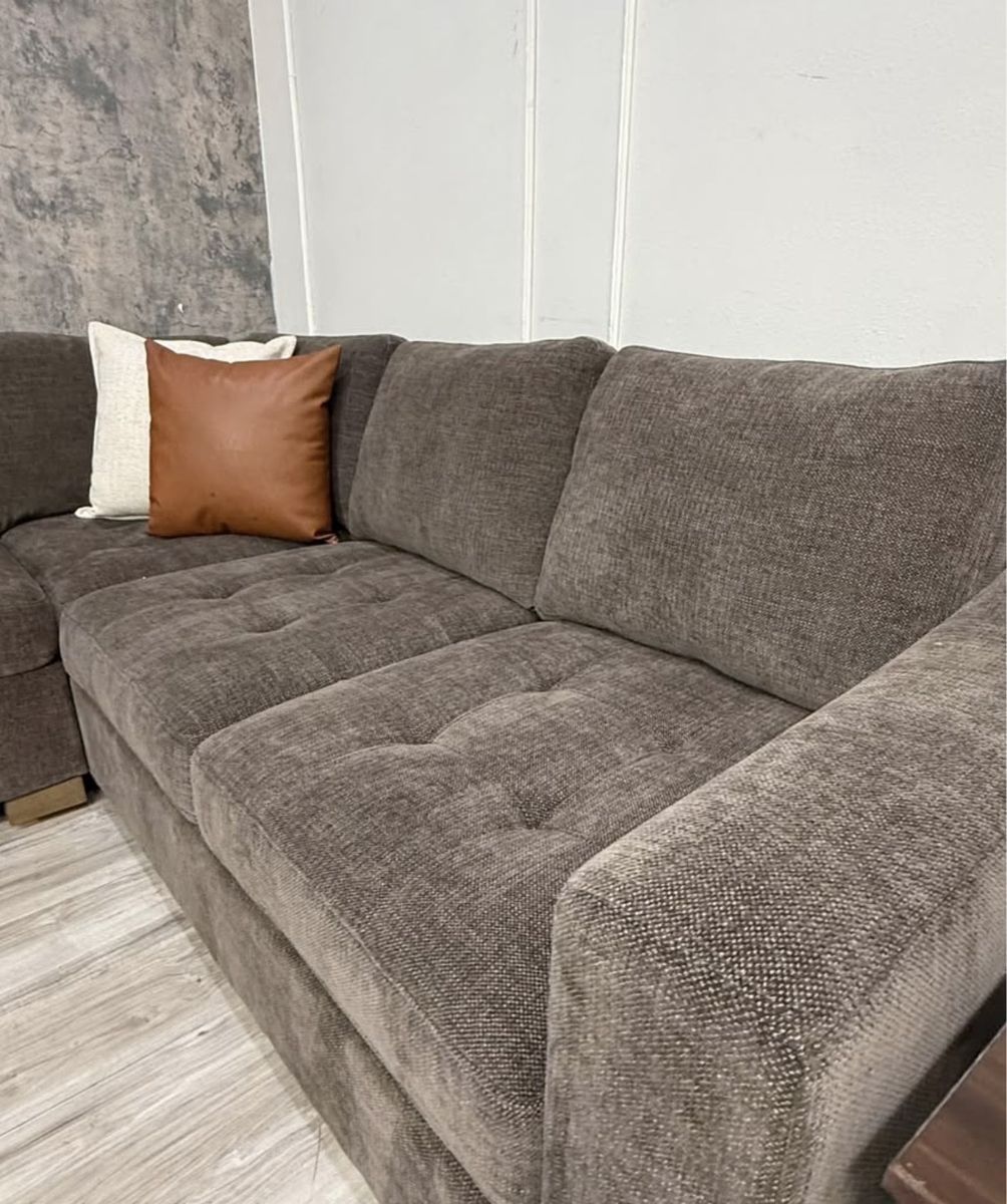 This spacious sectional delivers family-ready comfort with a streamlined look. Tufted, attached seat cushions pair with reversible back cushions to provide long-lasting comfort and versatility. Ellsford brings you timeless design and modern ease.