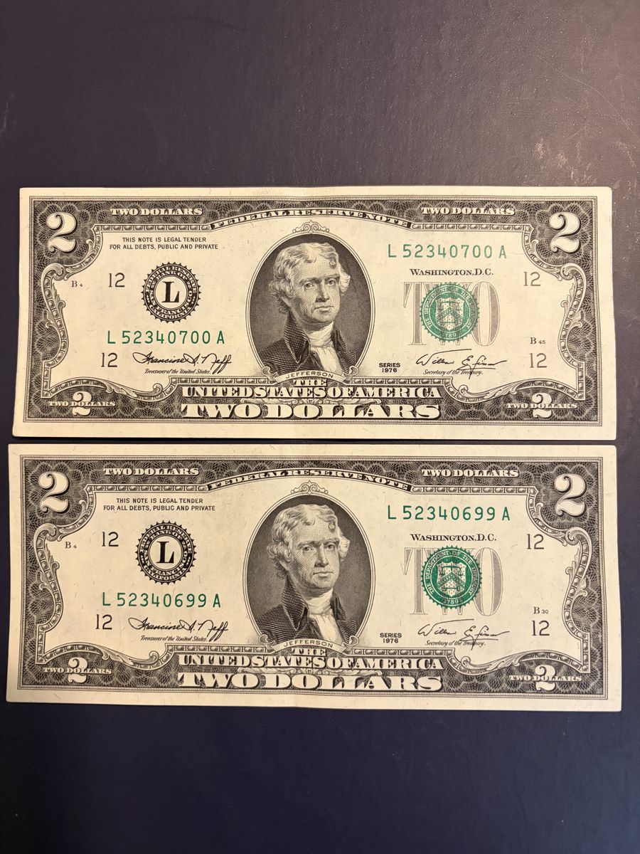 Venmo2 sets of 2 sequential bills. Crisp like new condition. Offers considered. $15 for both sets. Or $8 for one set.