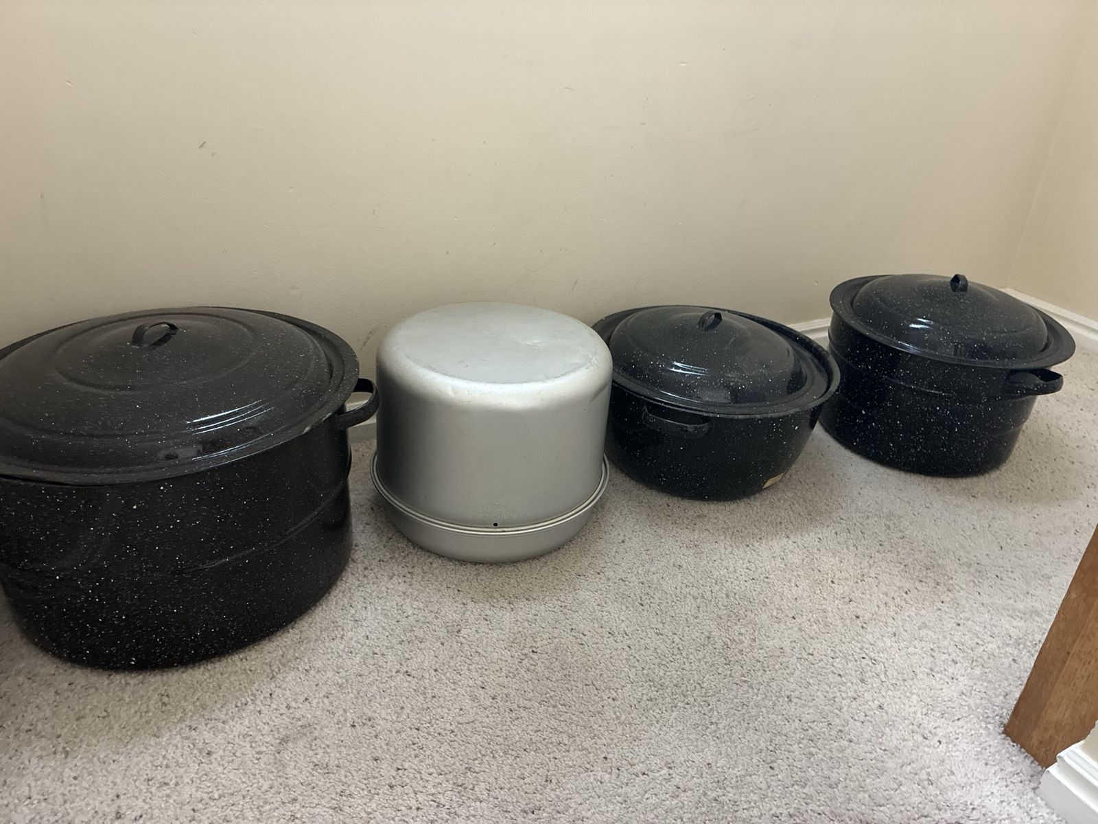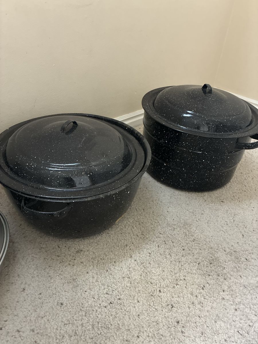 VenmoThree large granite pots with racks inside for canning. One aluminum steam canner. Asking $5 each. Sandy location. Cash or Venmo. Text 801-520-4748