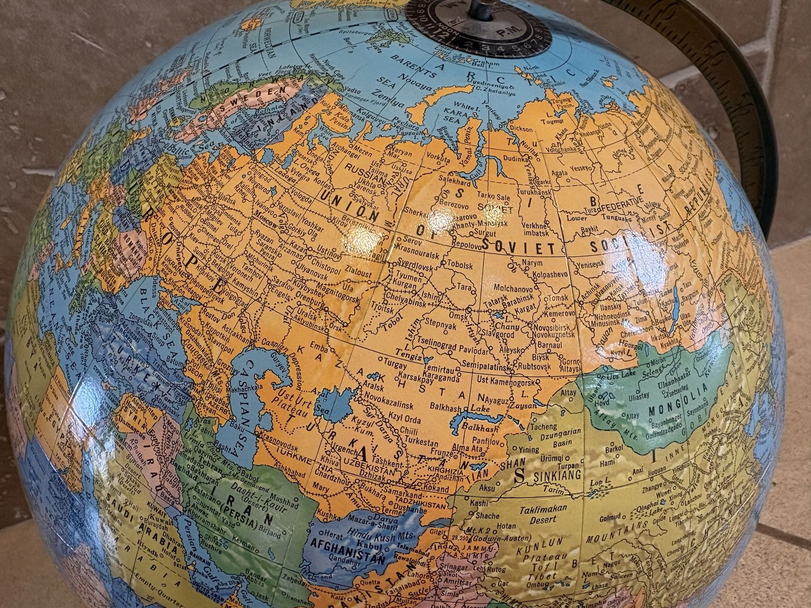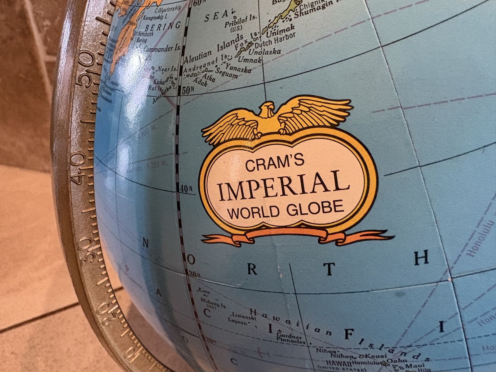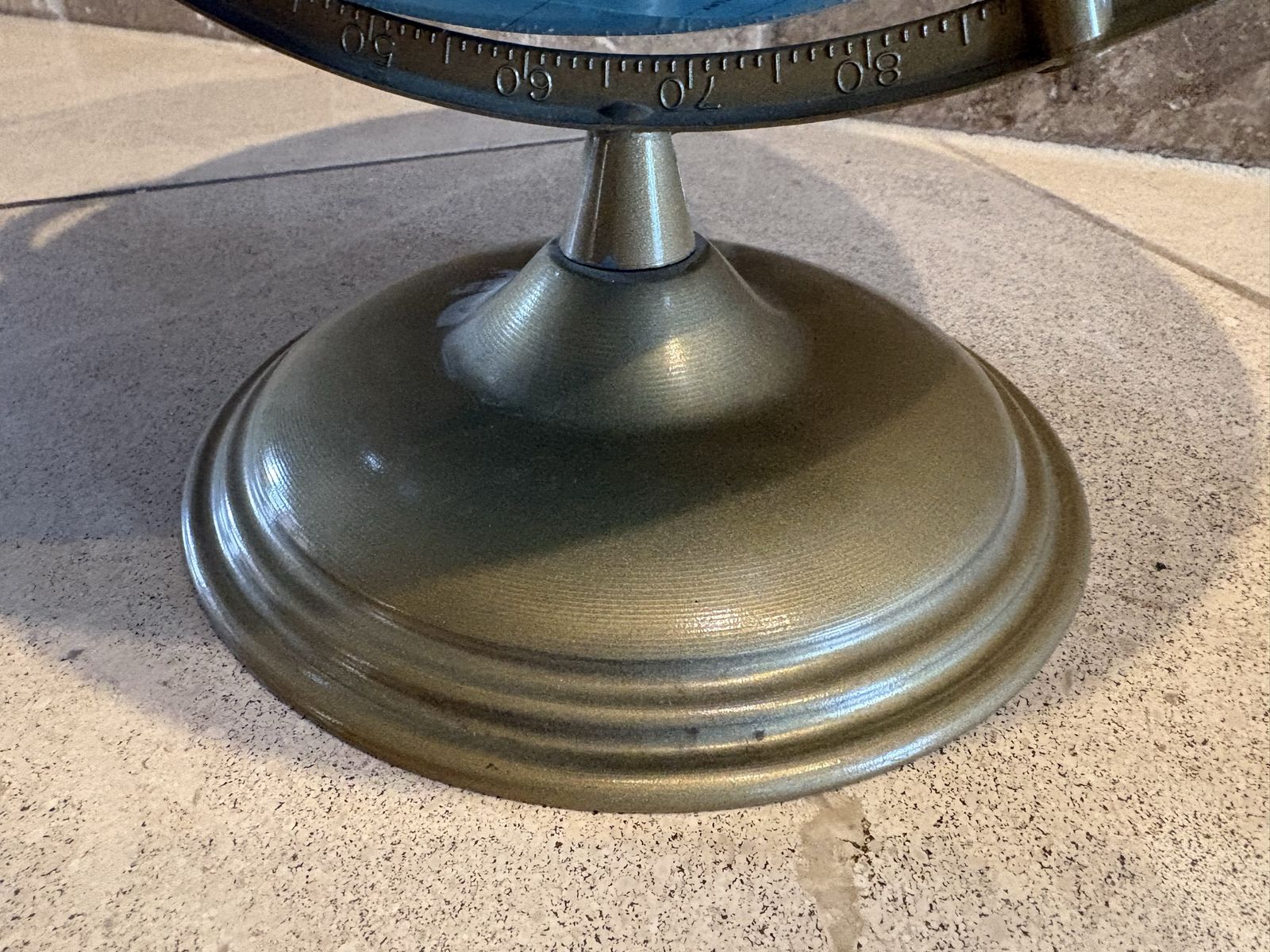 I have a Crams Imperial World Globe on a bronze colored stand. It is about 16 inches tall with the stand. I believe the globe is about 12 inches across. Based on the countries I believe it is from the 1980s. It’s in pretty good condition but does have a little scratch (see the last picture). See my other ads for jewelry, artwork, home decor and more.