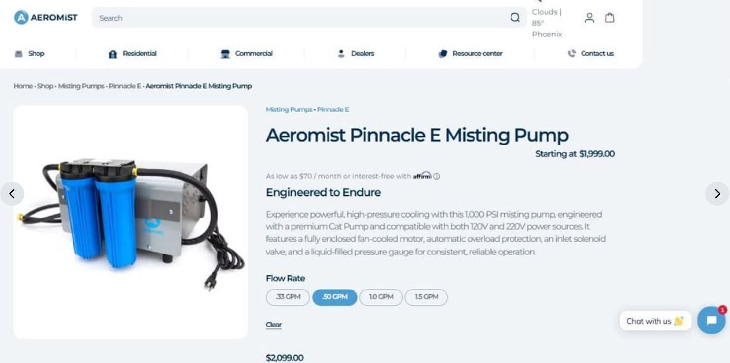 Aeromist Pinnacle E Misting Pump | Patio Misting