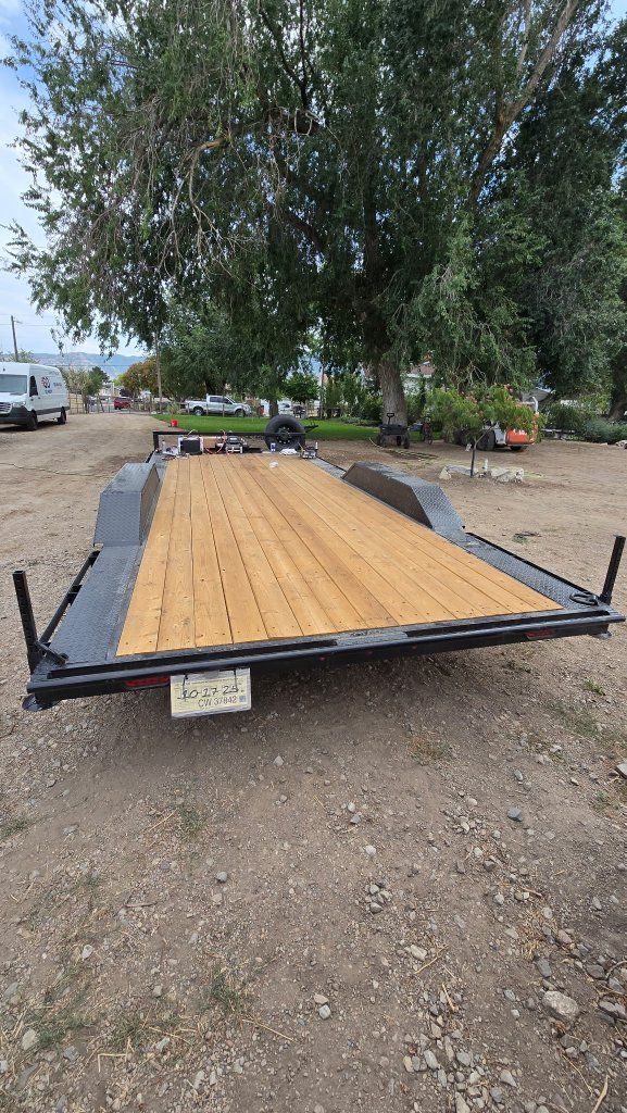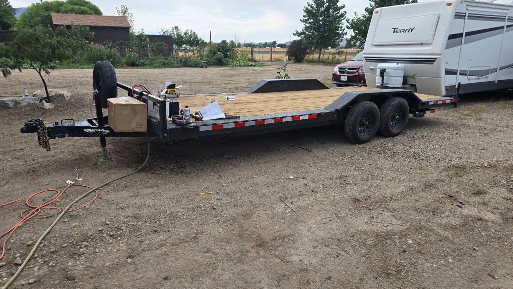 Venmo2025 workhorse car hauler 20' with drive over fenders 10k axles a winch and all vehicle tie downs included it has deck lights for loading at night led lights all around and a solar charging unit so its always ready!