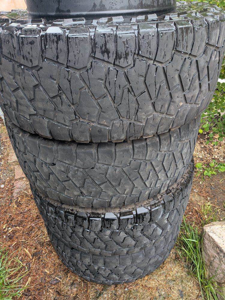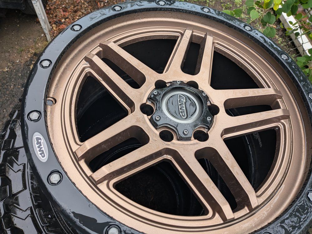 20-In 4 amp rims on 35 5-in Toyo tires decent tread. they will need to be mounted. we'll accept trades or cash offers The rims are brand new. only one of them is out of the box