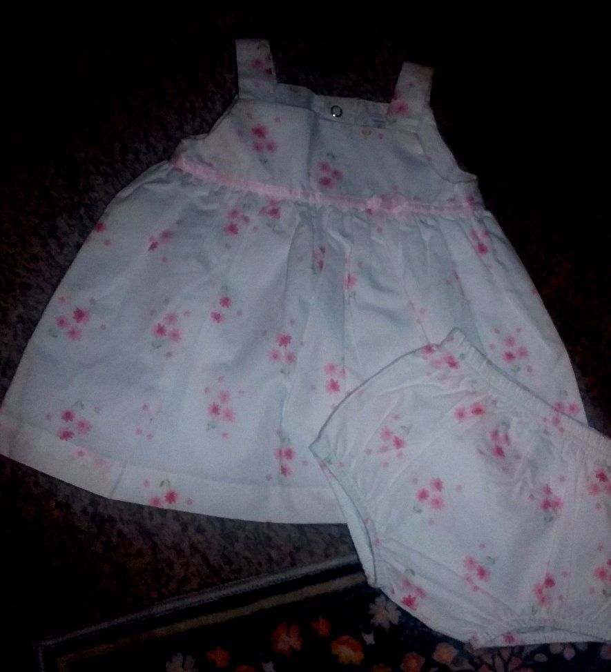 2 outfits by Carter's....a pink pantsuit with flowers...and a white sundress with flowers