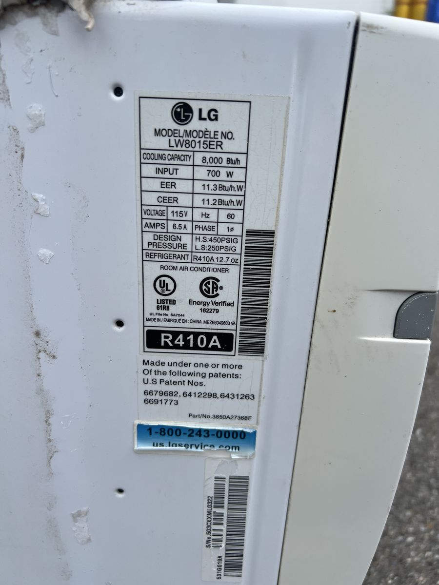 GooglePayLG brand model LW8015ER with cooling capacity of 8000 Btu and 700 W