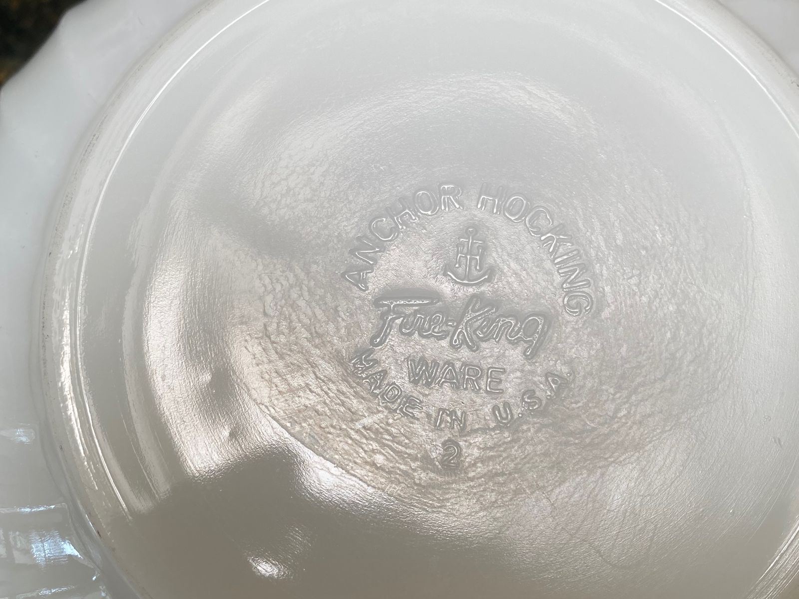Vintage Fire King White Glass Swirl Mixing Bowl measures 9 inches across and stands 4.5" high. The bowl is in great shape with no cracks or chips and minimal signs of wear.