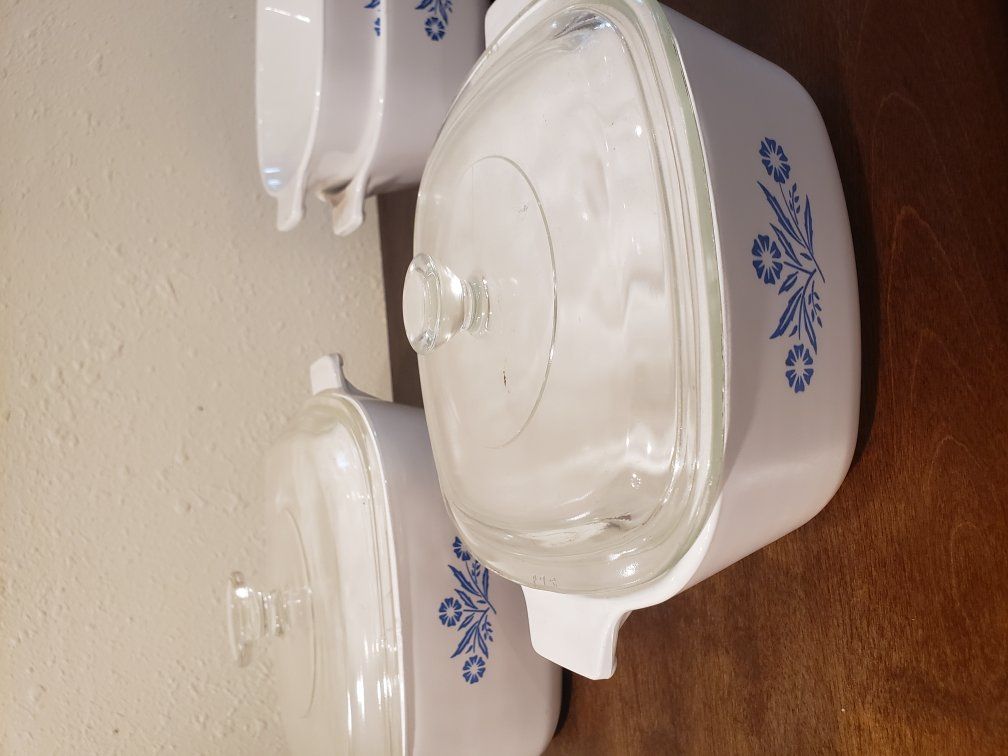 Venmo4 baking dishes, only 2 have lids 1- 2 and half quarthas lid 1-1 and three quater quart 2- 1 and half quarthas lid