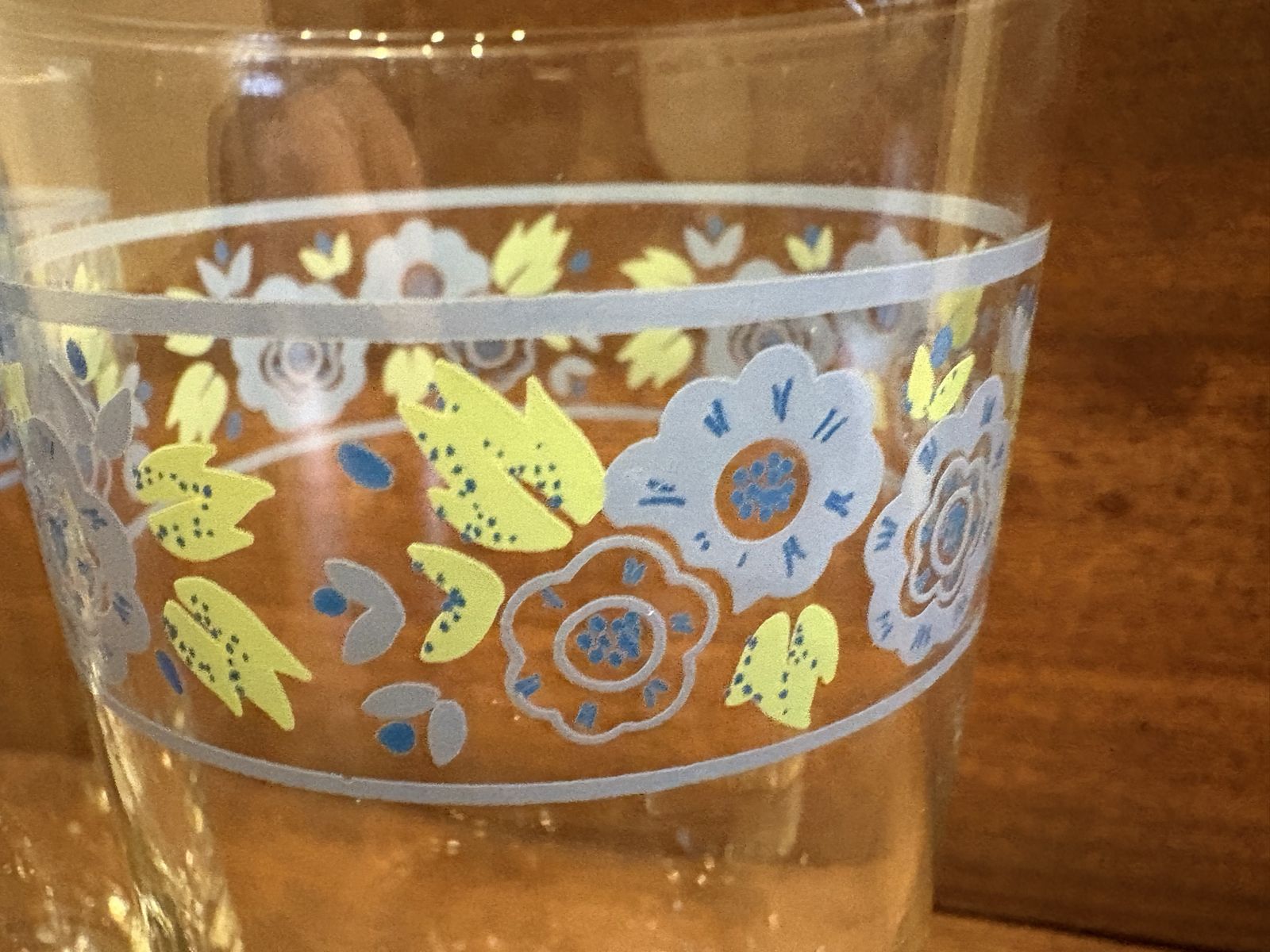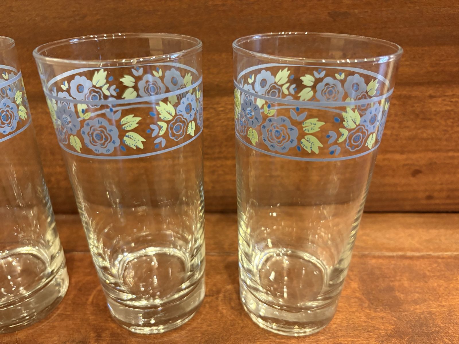 I have a set of 4 vintage drinking glasses with blue flowers and green leaves. They are 6 1/4 inches tall and 2 7/8 inches across. They’re in great condition. The price is for all of them together. See my other ads for jewelry, artwork, home decor and more.