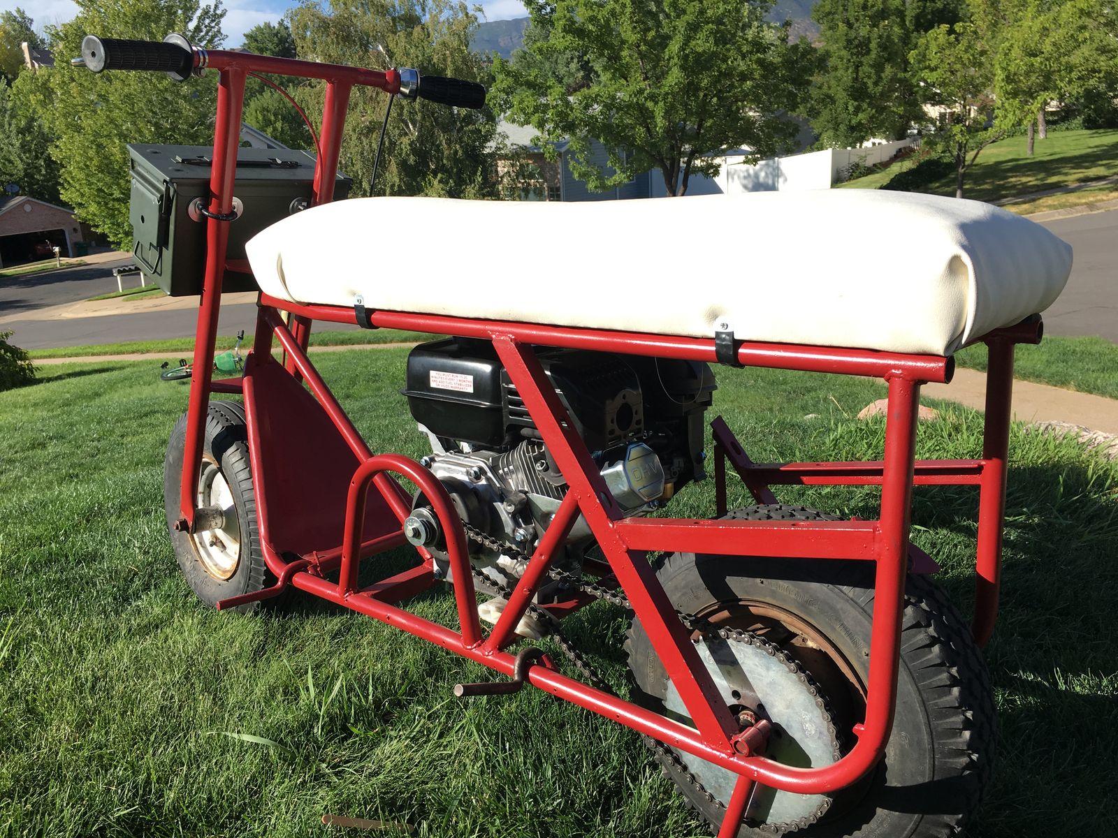 PayPalthis is a restored tote gote that has been turned into a mini bike. the seat was reapolstered with with leather and new padding. Predator 212 cc engine was put in. on the front of the mini bike there a storage container. Along with that there is wiring for bar end turn signals, horn, headlights and a tail light. the brake cable might need to be adjusted. As of now the 212 engine would probably need the carbuerator cleaned before running again, which is a super simple task that anyone can do with a youtube tutorial. I am leaving the state for the summer and trying to get some cash to pay for my plane ticket. If you're looking for a fun mini bike sold as is, feel free to reach out! I'm located in Layton. If you pick it up before thursday I will discount $50 off. I also have a Go Kart if you're interested...