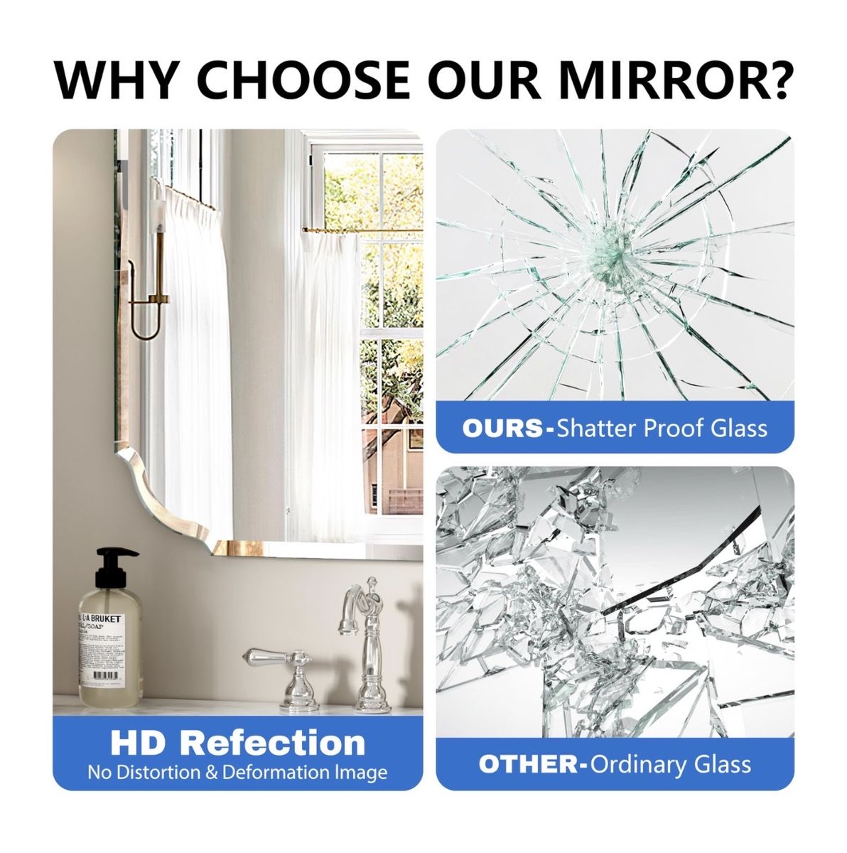 GOAND Silver Wall Mirror-Beveled Edge Frameless Mirror for Bathroom, Vanity, Bedroom, Rectangle Mirrors (32X24inch)