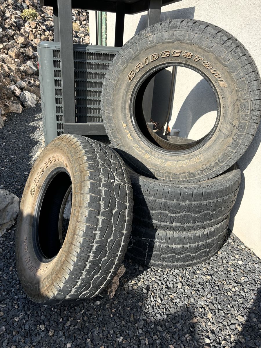 VenmoHave 4 Tires size 285/70R17 that came off a Toyota Tacoma that I no longer have they still have good tread on them half or more they are Bridgestone Revo 3 A/Ts