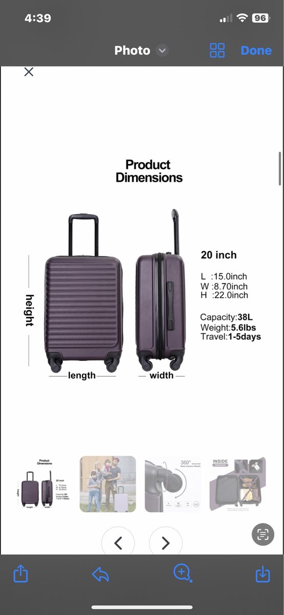 ApplePayTravelhouse Hardside Luggage, Lightweight Travel Suitcase with Multi-directional Spinner Wheels,Carry on 20in For Unisex (Purple 85) Retails for $100