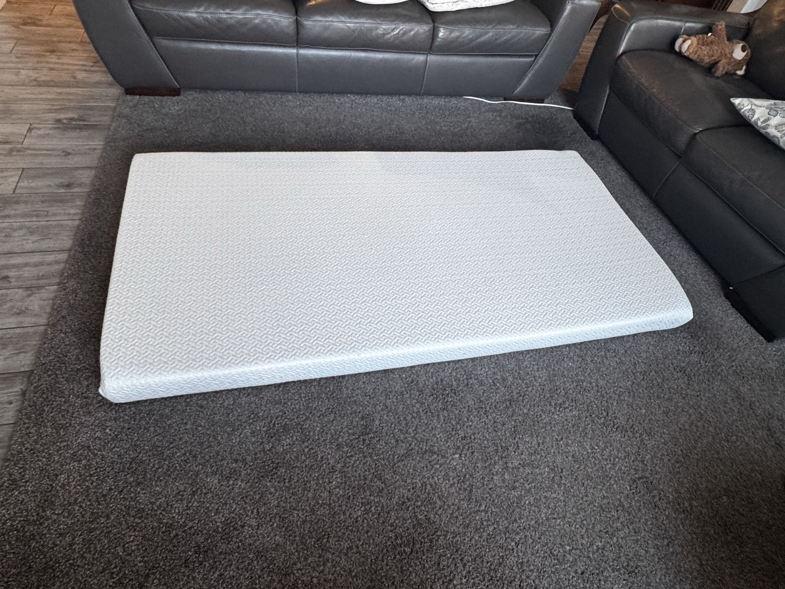 Venmo4” Gel Memory Foam Twin Mattress Topper (Cooling + Bamboo Cover)-Like new