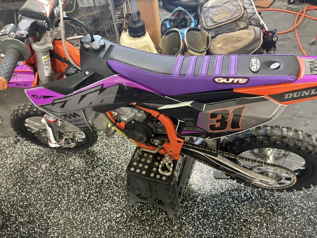Venmo2025 KTM 65SX Save on sales tax, setup/build costs, and time. Bike has just under 40 hrs on meter Bike was just framed and engine gone through new top end and power valve Factory Connection Suspension with springs forks, AMA legal, and setup for 55# rider. Fresh Dunlop MX34's Flexx Handlebars TREX throttle housing Works Connection Pro launch start device Guts seat cover Fastway MINI footpegs W/F7 cleats Only ran VP Racing Fuel T2