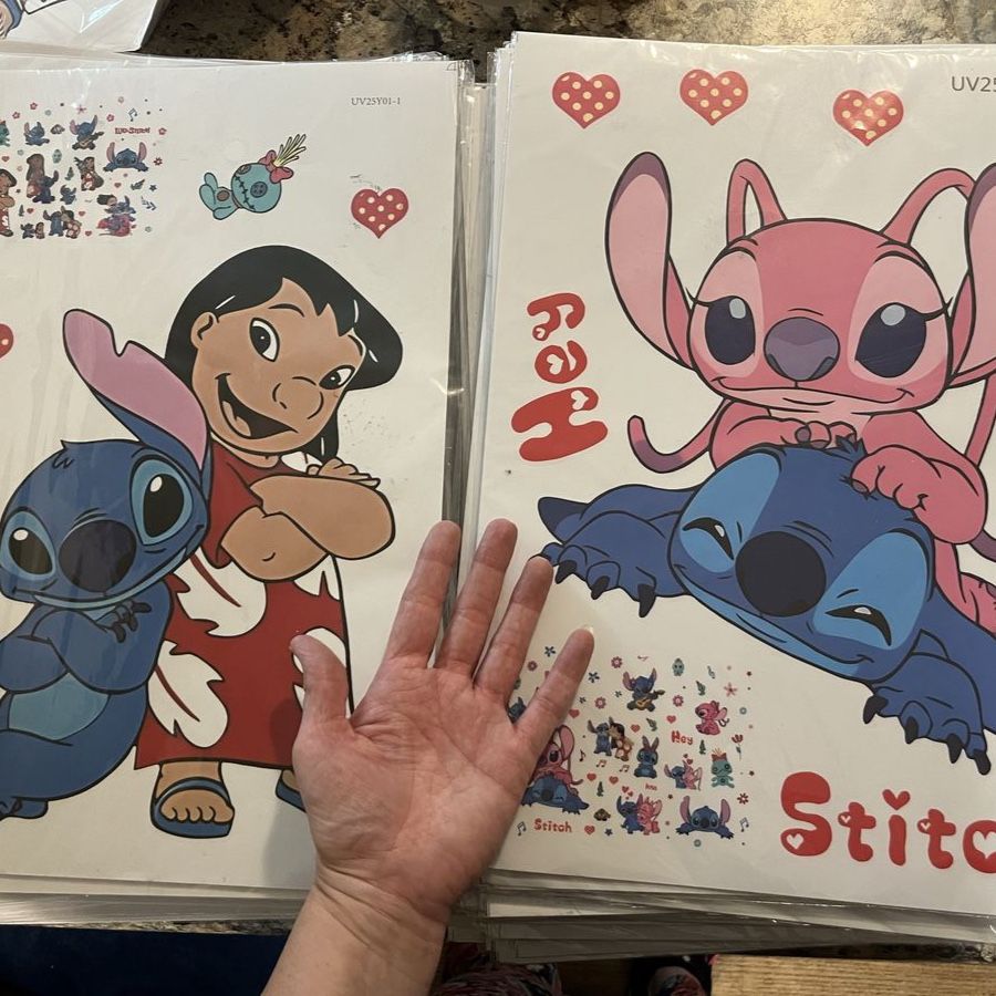 The Jumbo Wall Stickers featuring characters from Disney's Lilo & Stitch, including Lilo, Angel, and Stitch, are perfect for decorating kids' rooms. These large stickers are suitable for use on walls, windows, furniture, and doors. Made by Disney, these stickers bring a touch of imagination and fun to any room, making them a great addition to any Disney fan's home décor.