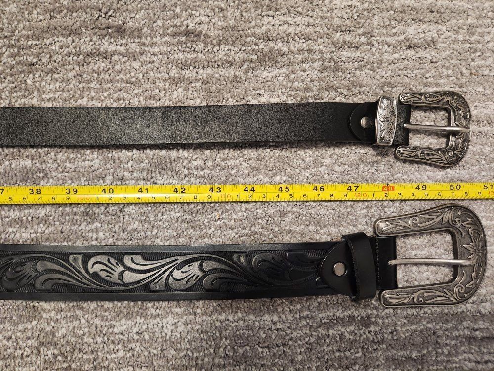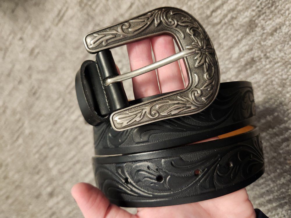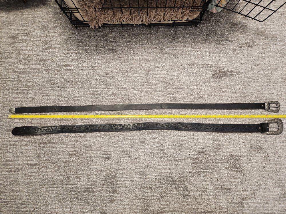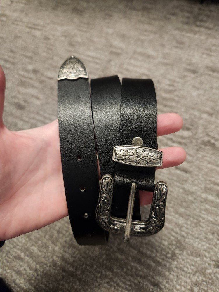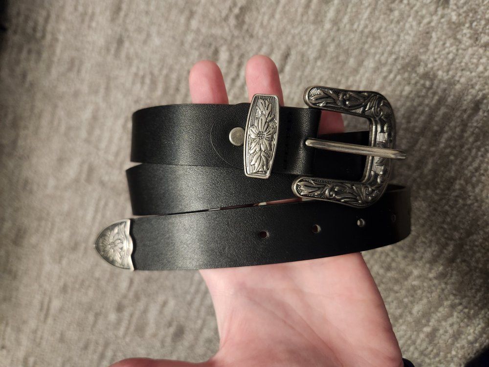 Belt 2 (silver tip, smaller buckle) -size 42-45" -PU leather -only worn once -$8 OBO