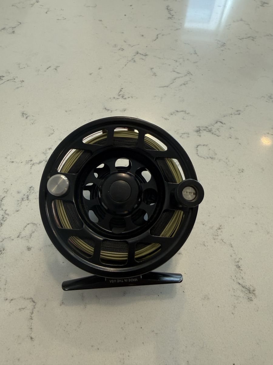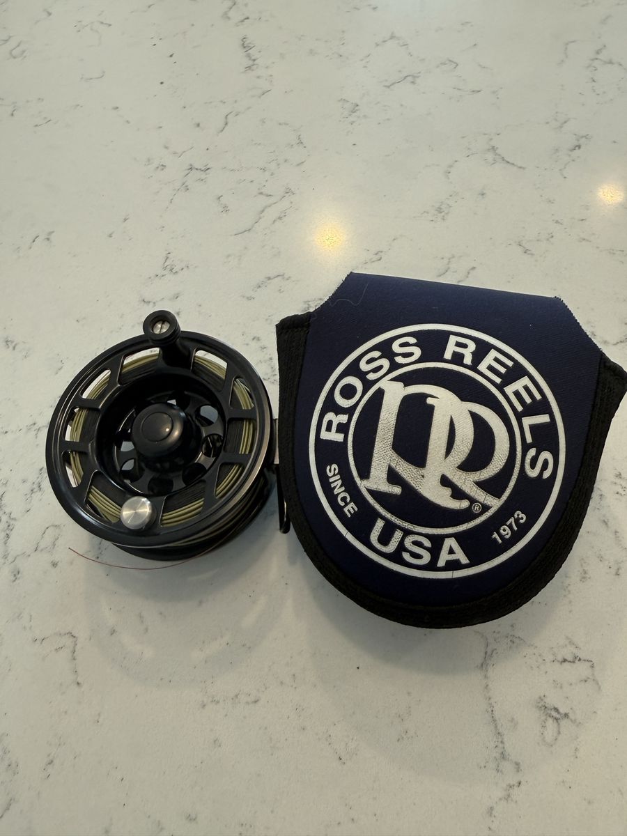 Awesome Ross Reels Cimarron II fly fishing reel. Black color. Has fishing line already spooled. Comes with a cool Ross Reels cover. Made in USA. Has brand new euro line on it, never used.