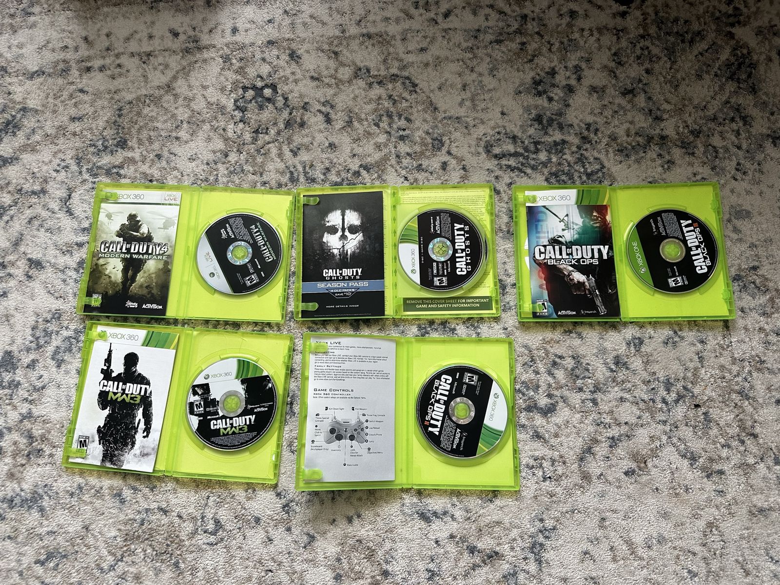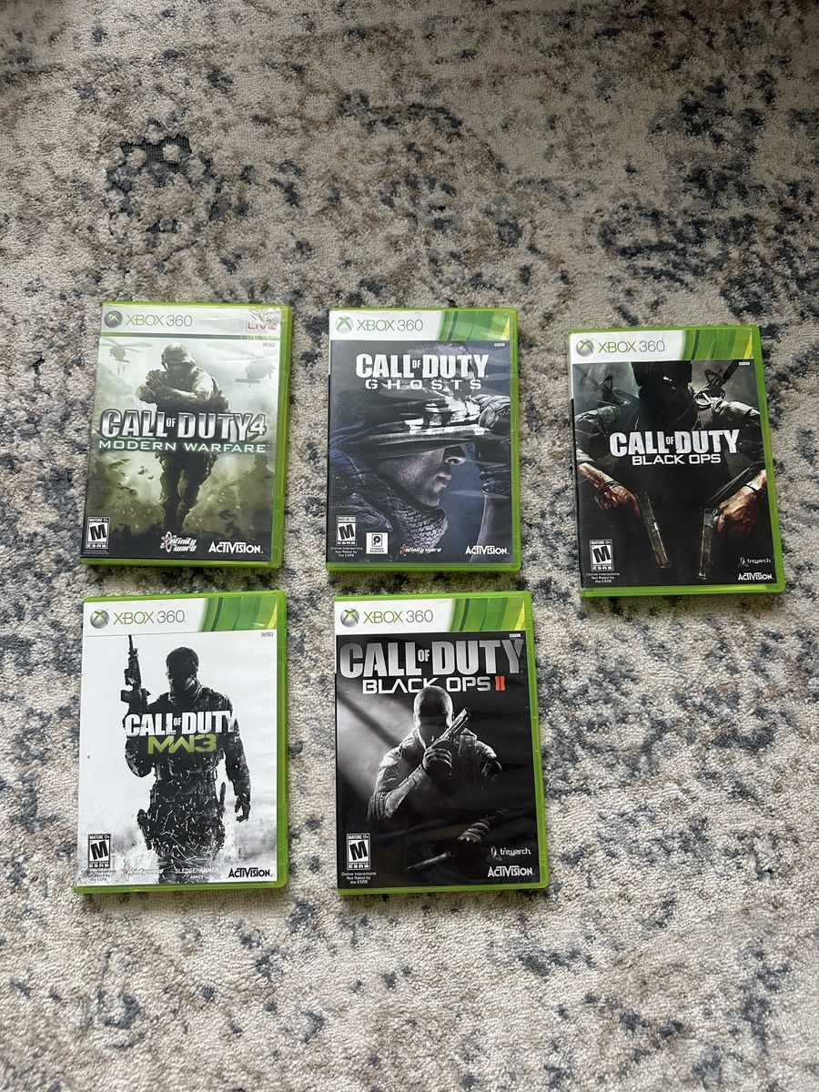 VenmoCall of Duty games for Xbox 360. Cases show signs of wear but have been cleaned and discs are still good. See pictures for condition. Pet and smoke free home.