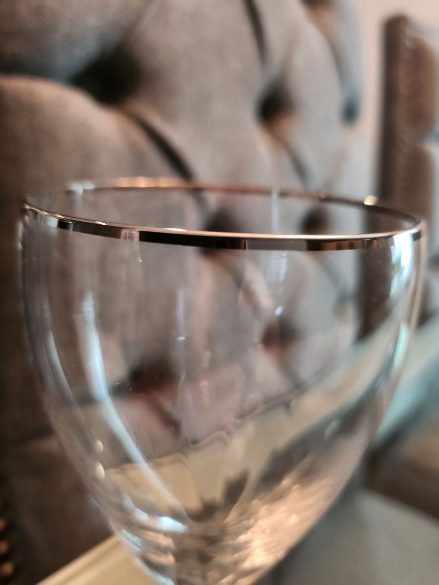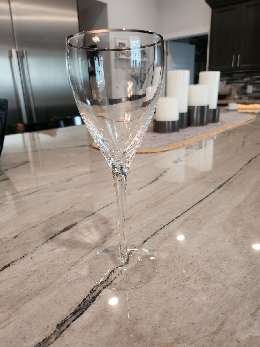 VenmoEight (8) crystal goblets with platinum rim. 10 oz and 8 3/4 inch in height. 3 inch diameter. Sold as a set of 8. All for $45. Like new condition.
