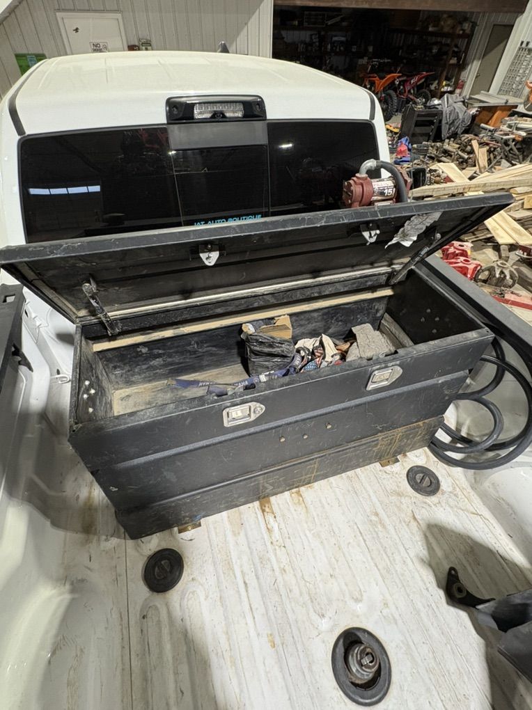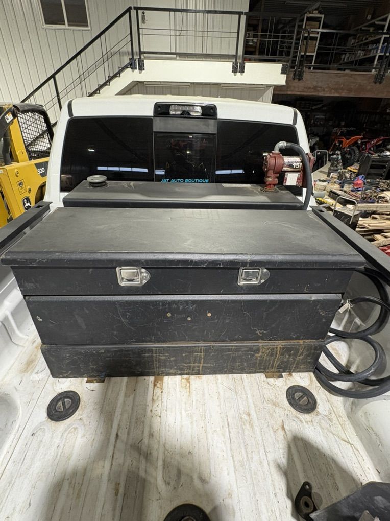 92 gallon tank and toolbox no leaks in great shape has a fill rite 15 gallon per minute pump with a 12 foot hose and nozzle the pump has a brand new rebuild kit in it 1900 obo can meet in the Evanston area tank is 2600 dollars brand new and the pump is 800 has a key to lock the box and all the cord to wire the pump in