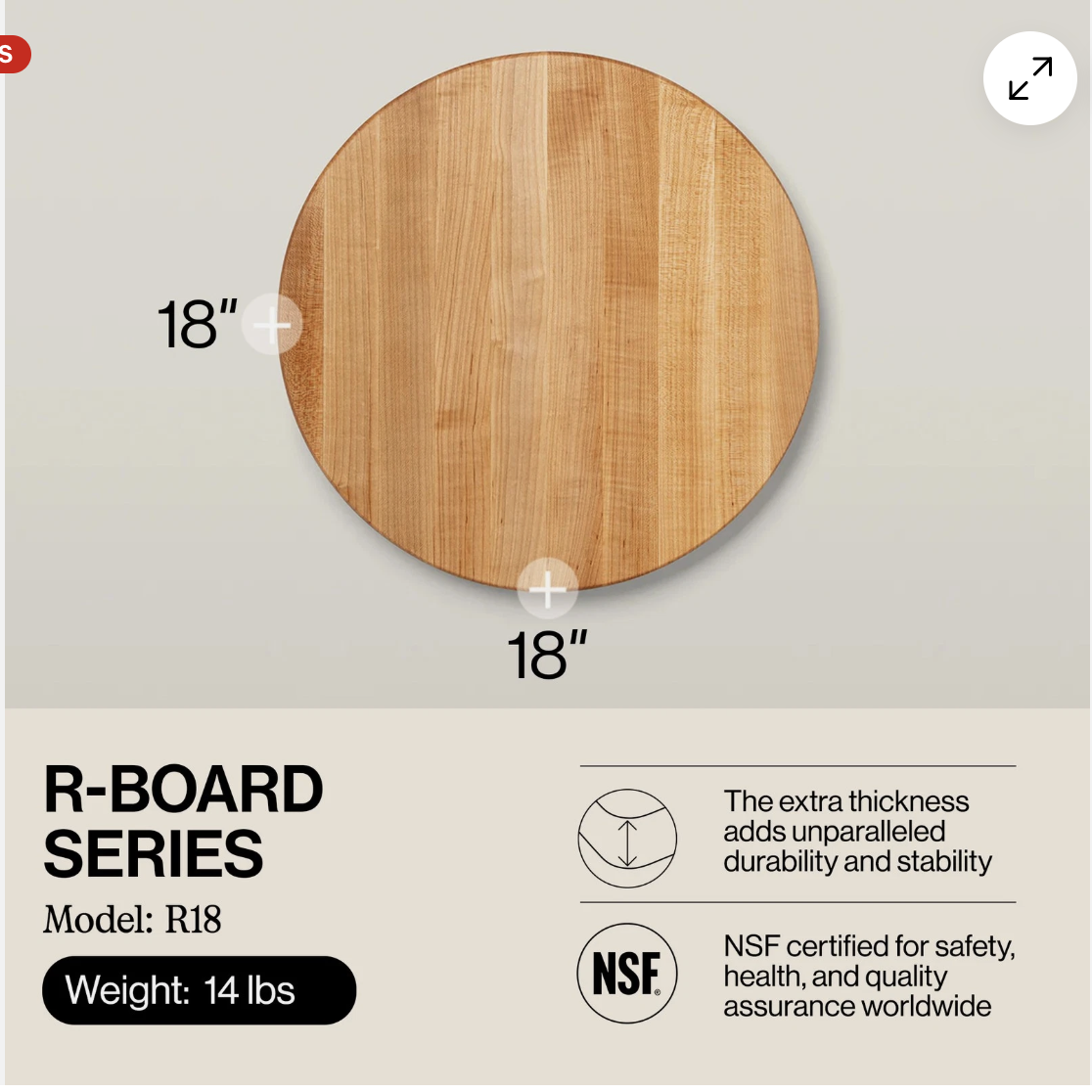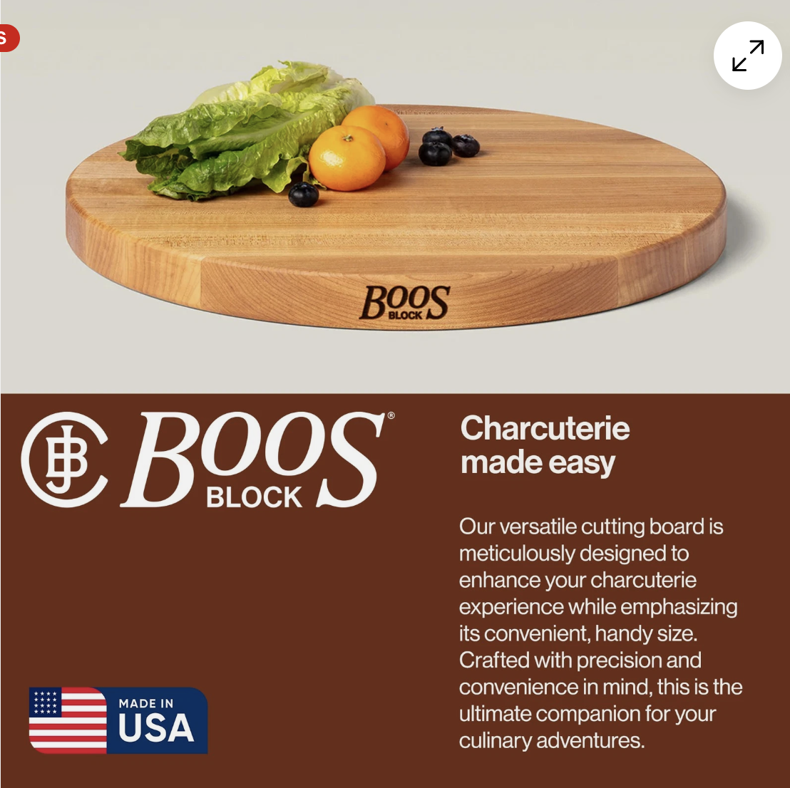 PayPalThe John Boos R-Board Reversible Wood Cutting Board is a high-quality and durable kitchen essential. Made from solid Maple wood with a round shape and traditional style, this 18" x 18" x 1 1/2" cutting board is both functional and stylish. Its reversible design allows for easy cleaning and versatile use in the kitchen. Proudly made in the United States by John Boos & Co., this cutting board is a must-have for any home chef looking for a reliable and long-lasting kitchen tool.