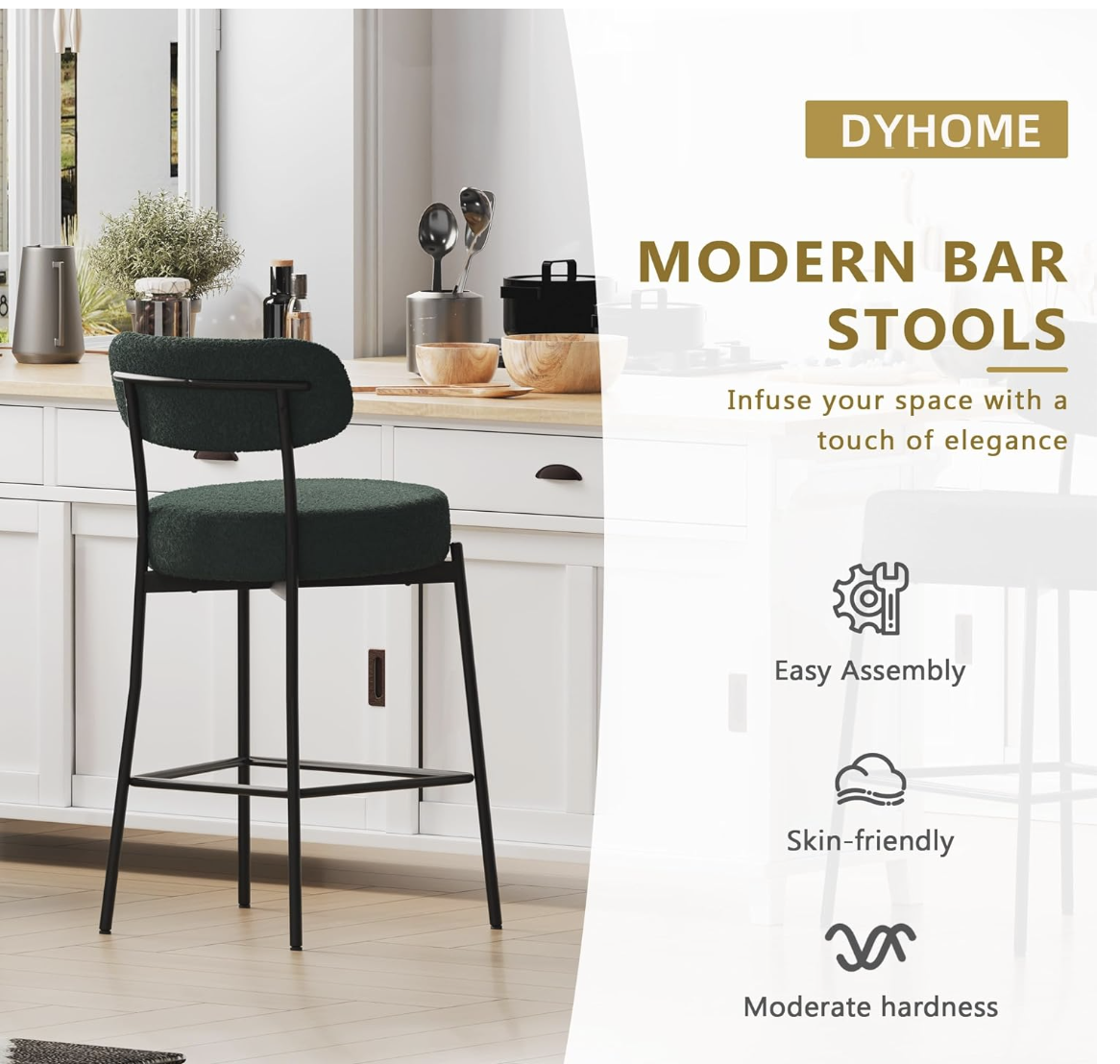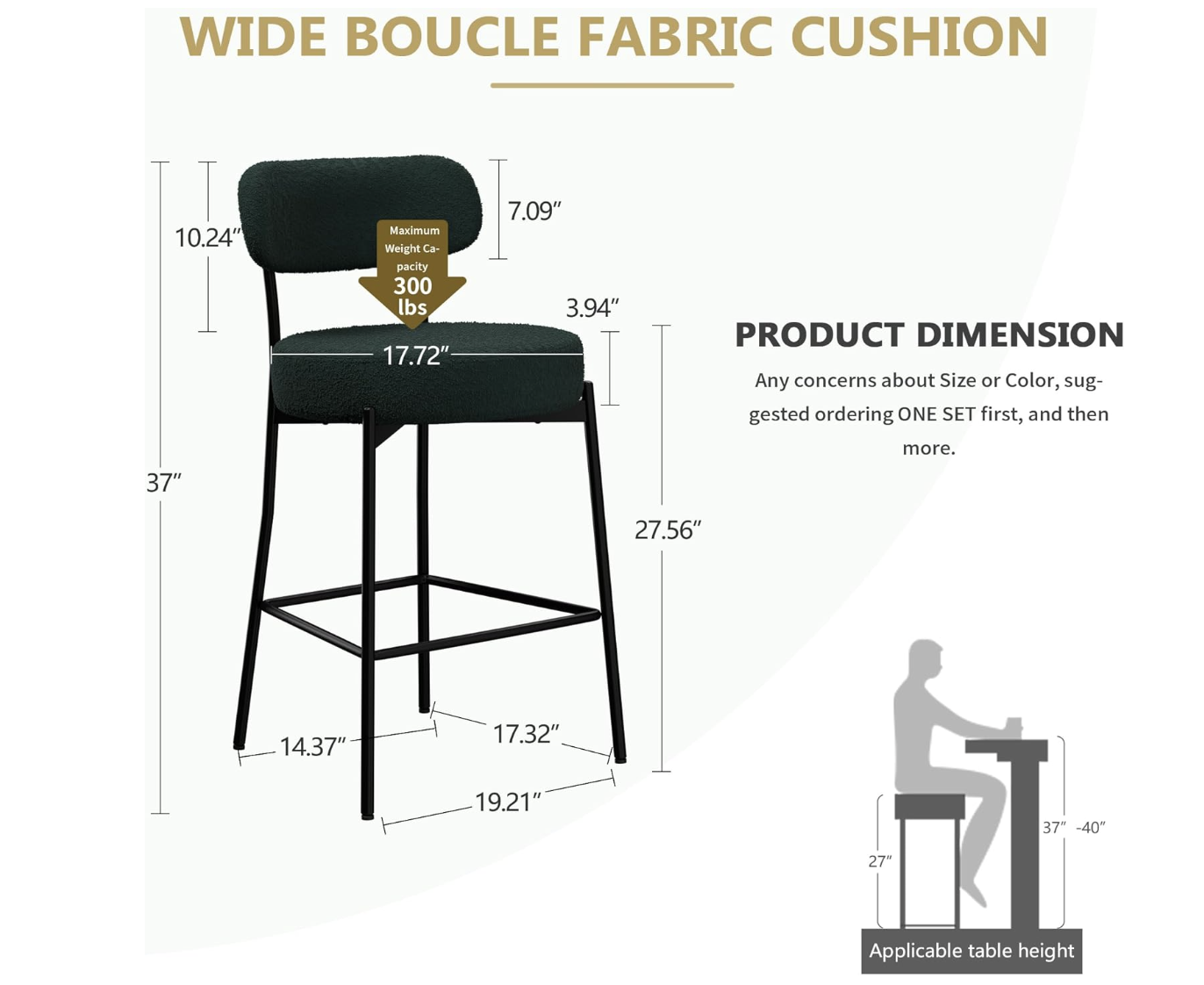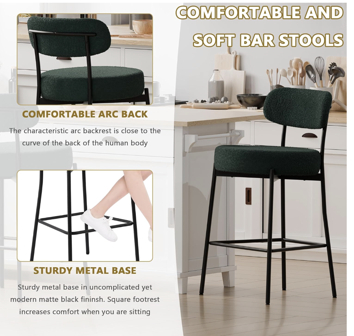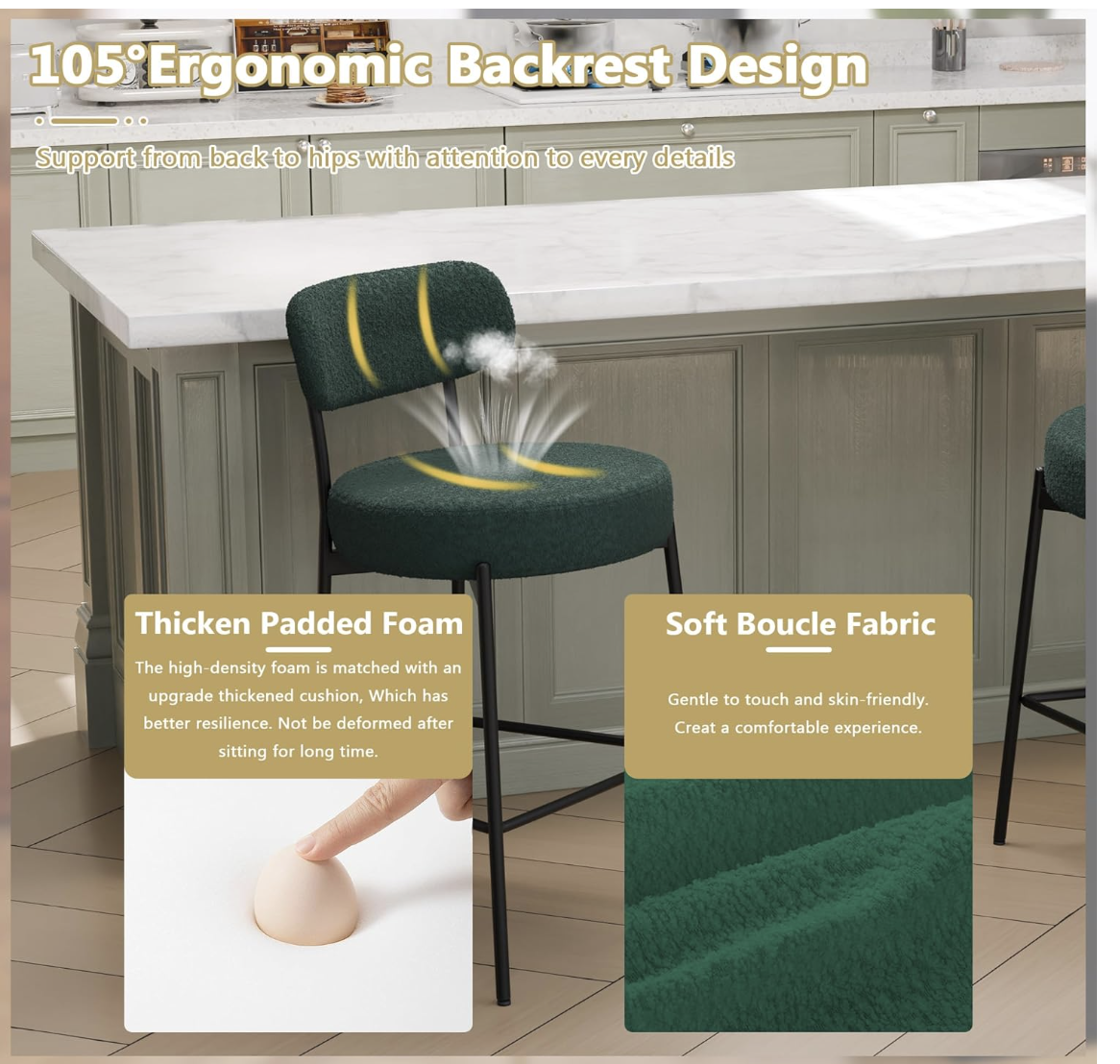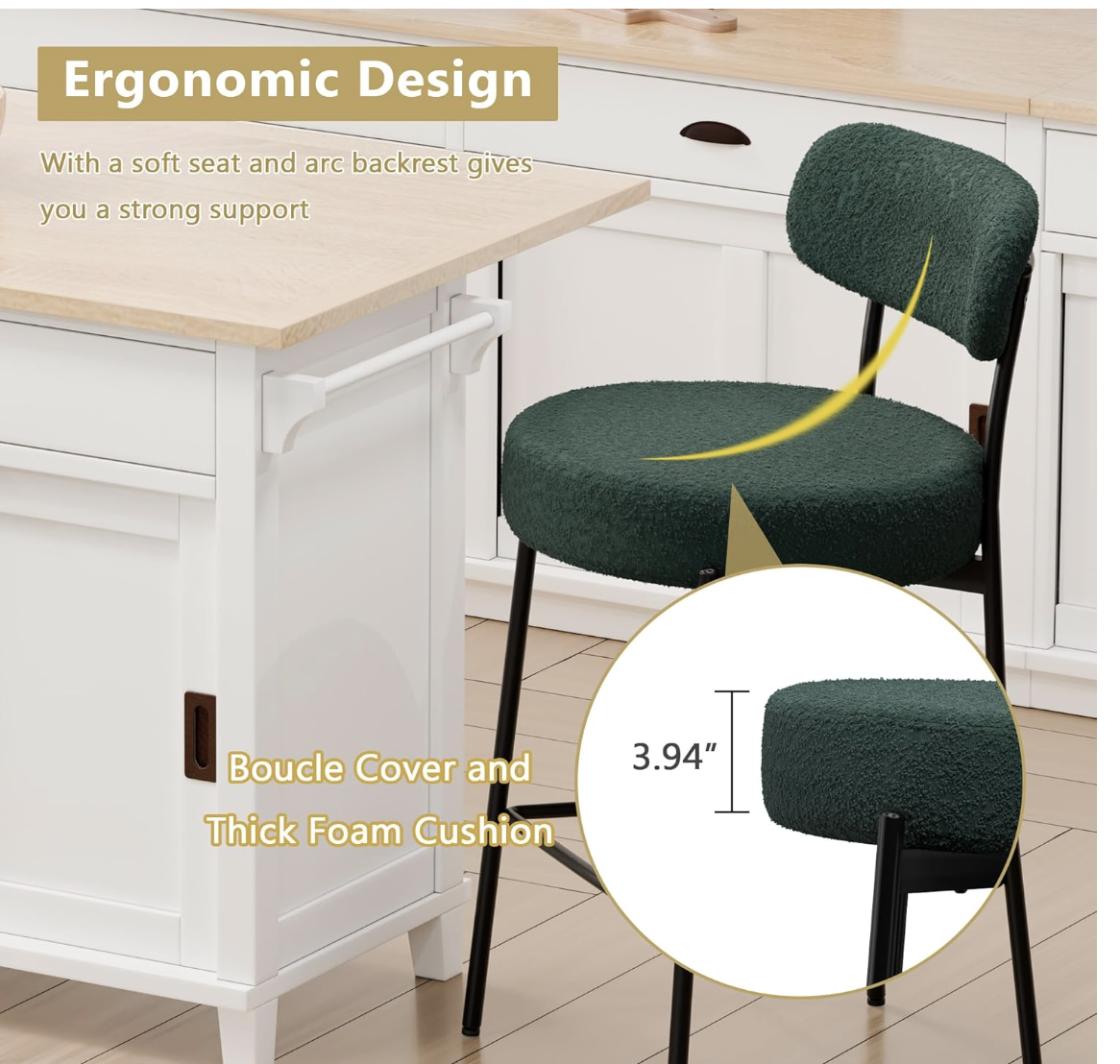 Brand new in box, Bar Stools Set of 3, Green 28 Inches Counter Height Stools,Modern Boucle Barstools with Back,Upholstered Bar Chairs