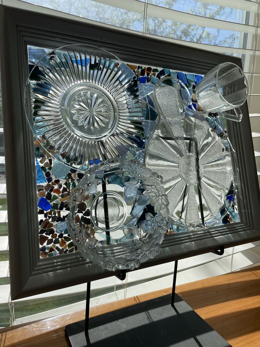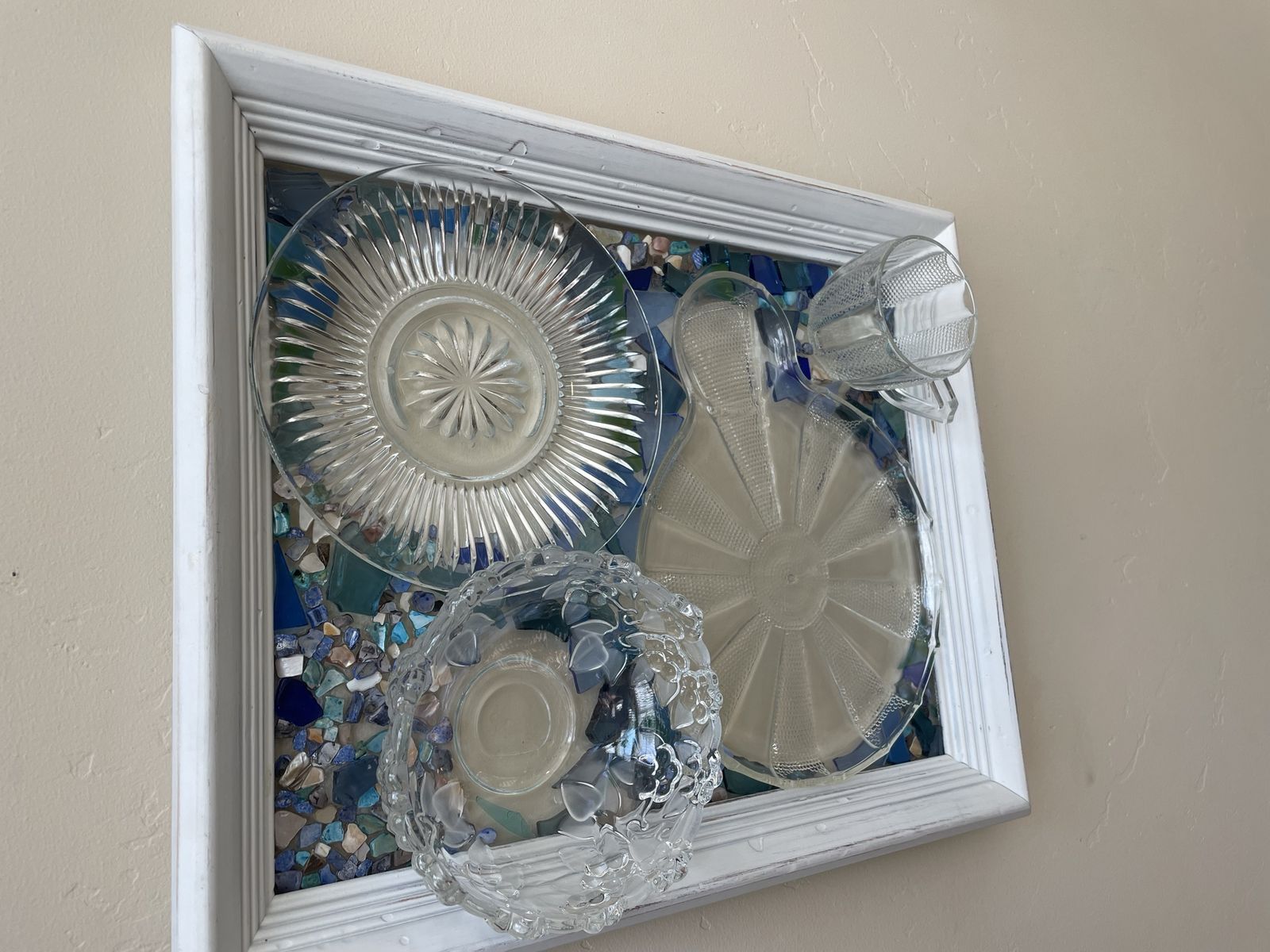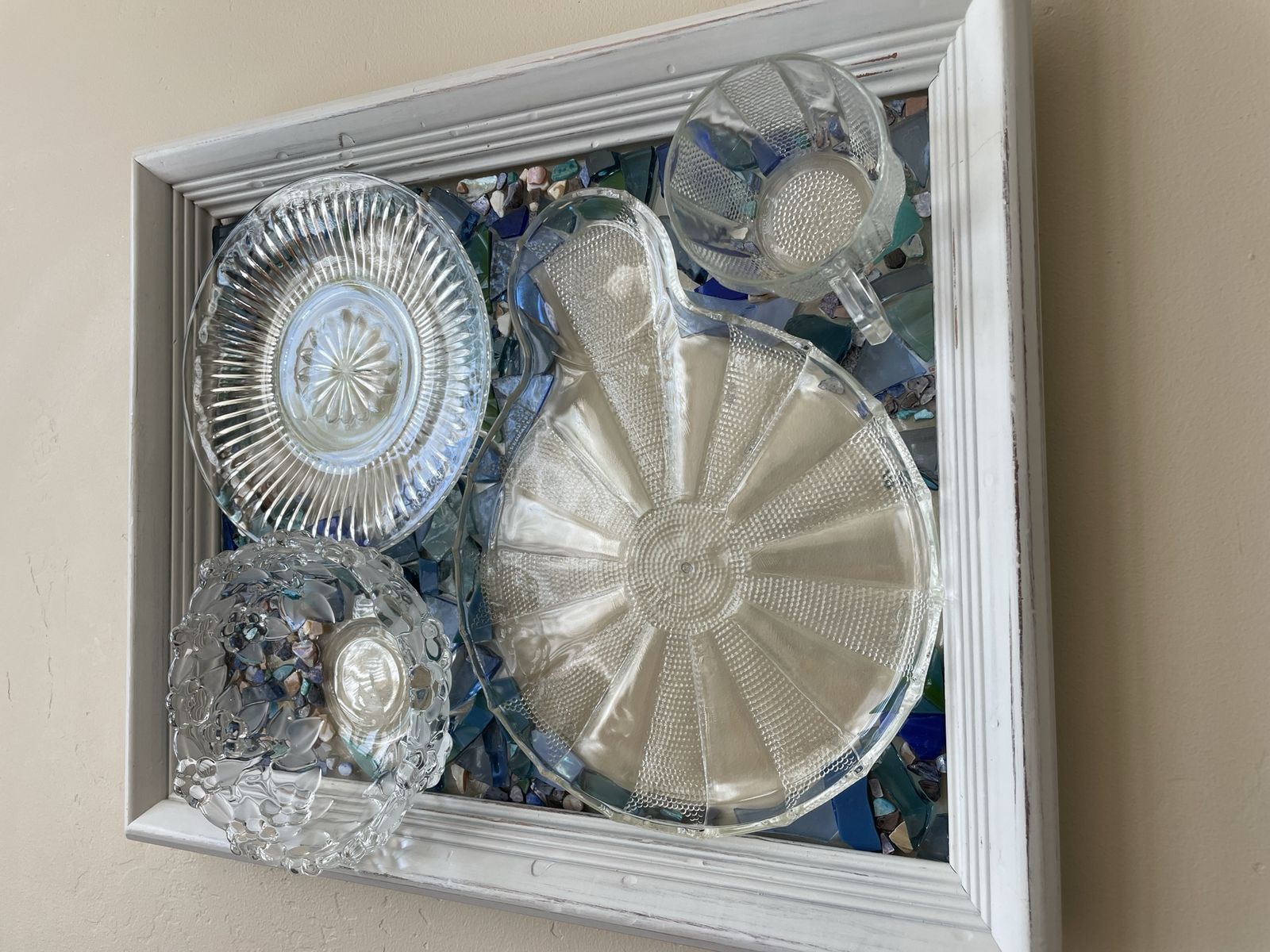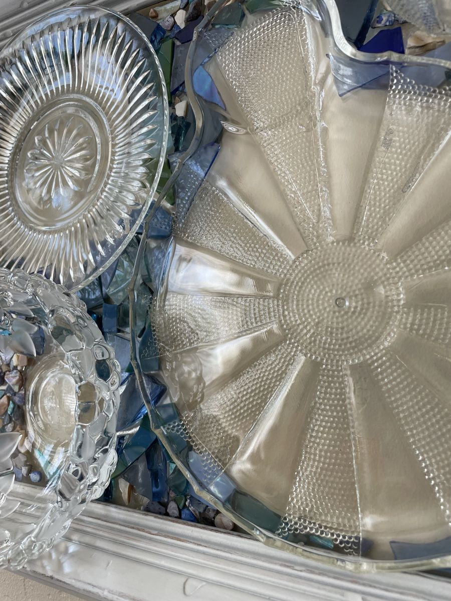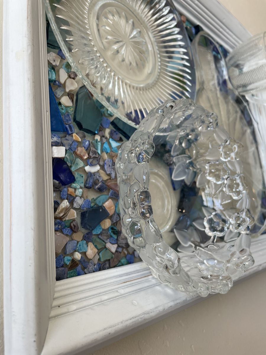 VenmoGorgeous one of a kind vintage dish preservation wall art. This stunning piece of art was handmade from precious antique dishes and seashells & framed in farmhouse white.