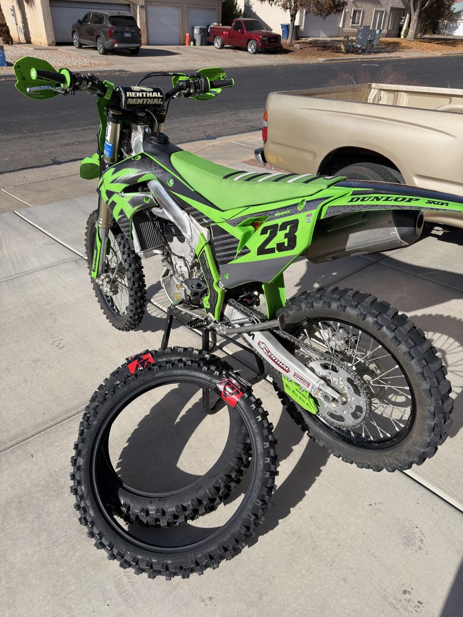 2022 Kawasaki 250X. 2 owners with only 100 hours on it. I do mostly trail riding not track. I’ve only taken it to the track around 4 times. No issues with bike at all. Has a fresh oil change and air filter. Also has a pair of new tires that come with, current tires on bike still have some life left in them. $4450 NO TRADES, must pick up, CASH ONLY