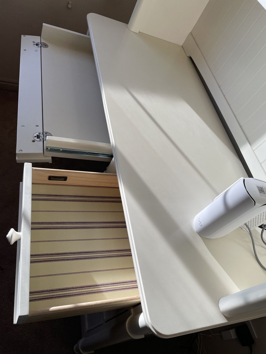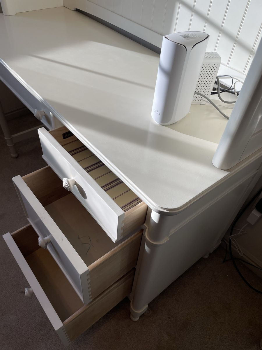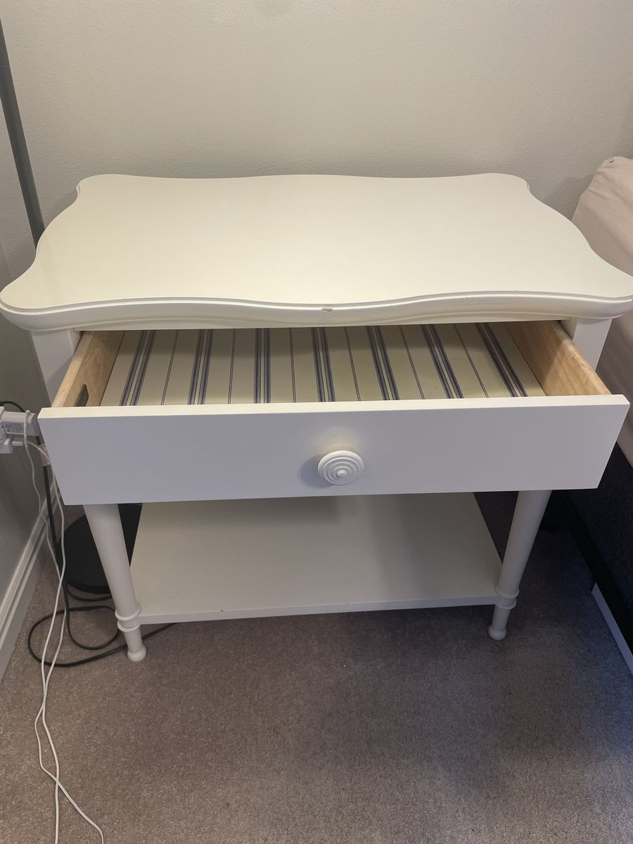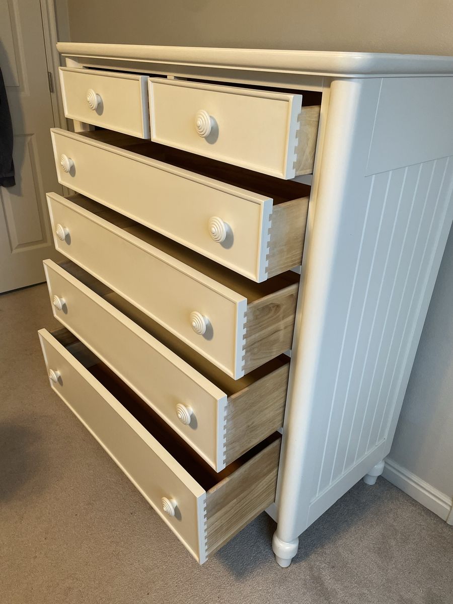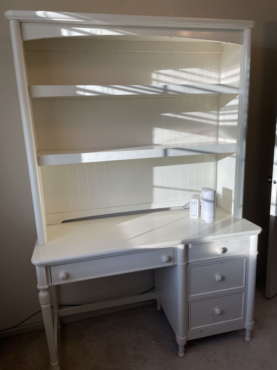 VenmoBrand: Bassett Solid wood construction 4-piece girls bedroom set: dresser, nightstand, desk with removable hutch Works like new. Has light cosmetic wear (see photos).