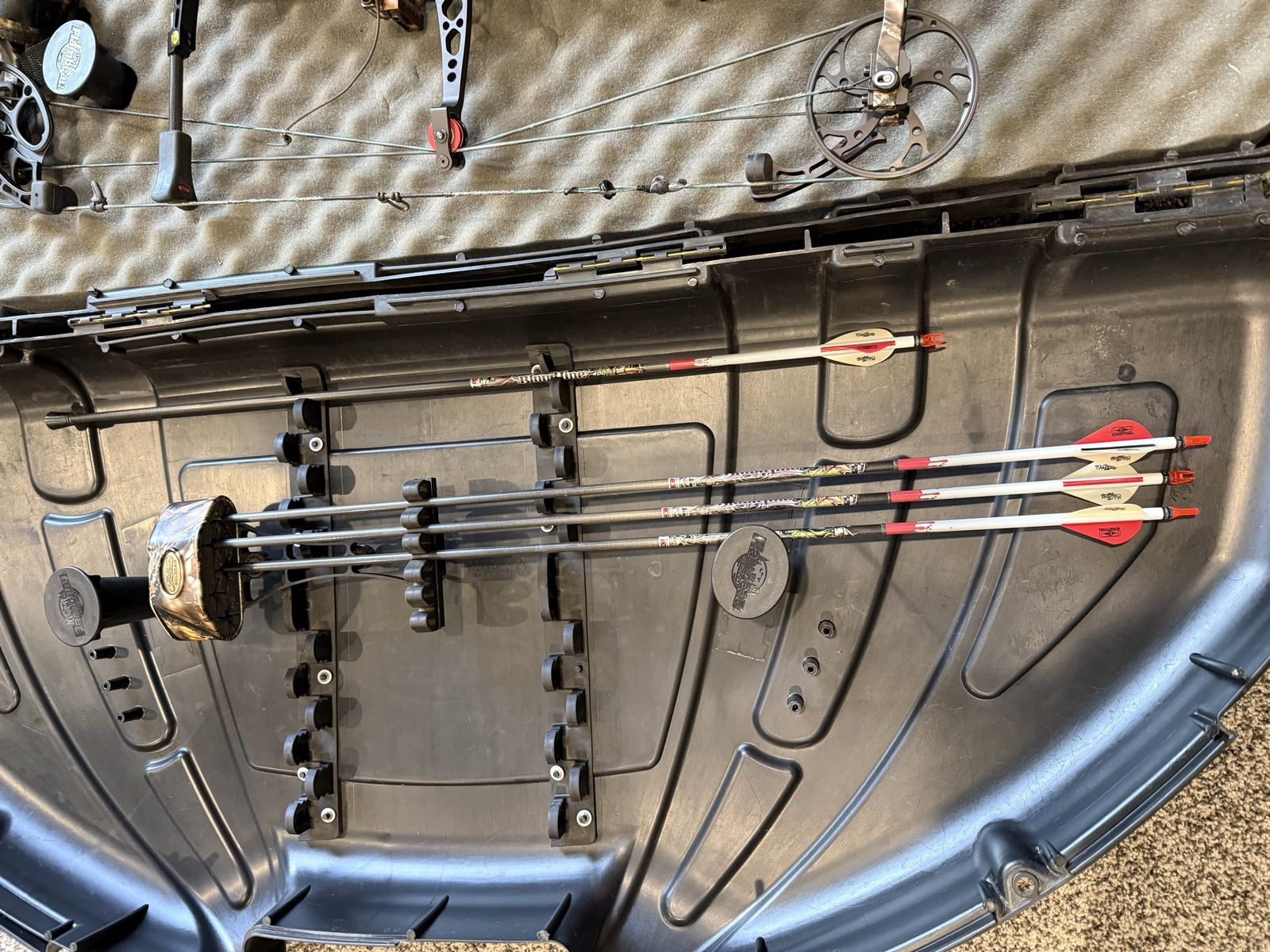 Axion 5 pin sight, tru ball release, stabilizer, Mathew’s 5 arrow quiver, 4 arrows, comes with some mechanical broadheads!