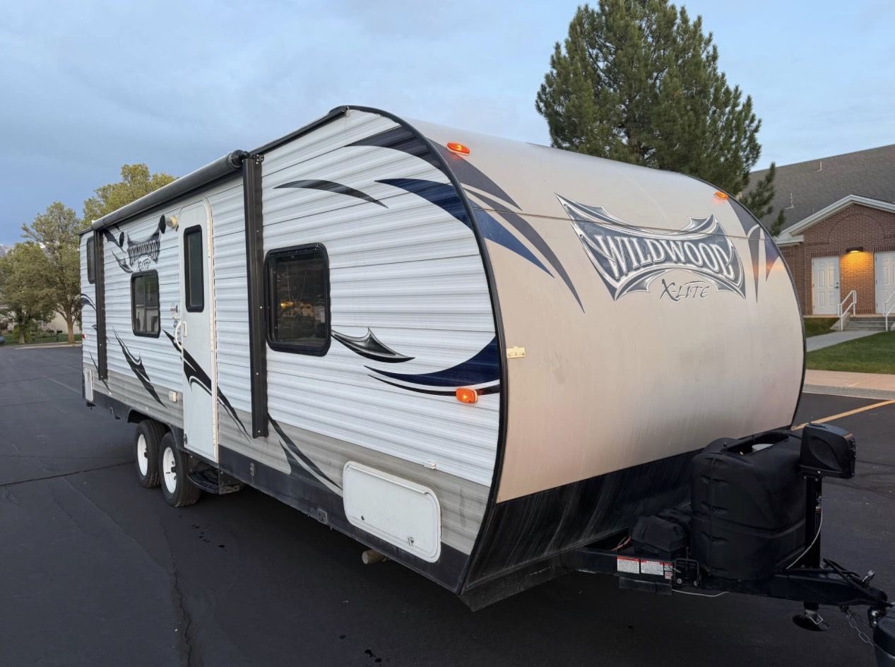 2015 forest river wildwood. 28ft bunkhouse comfortably sleeps 6. 2 bunks in the rear table makes a bed and couch is a pull out bed. In the front of the trailer fits a queen size mattress. Max weight is 7800 lb. All of the lights work except 1 marker light. New front jack installed last summer. Come with fresh water hose, sewer clean out hose, leveling pads, 20ft of sewer hose. Storage under the bed kitchen table seats and front of trailer.