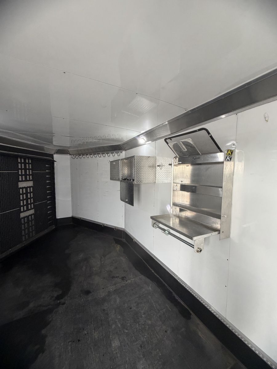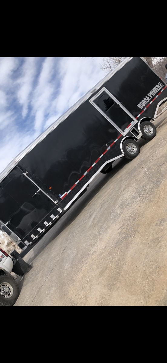 29’ Awesome trailer super heavy duty with new tires last season. Electric tongue, jack, spare tire. Gas can bin, tie down storage, 2 helmet boxes 2 benches and coat hooks does not have a heater.
