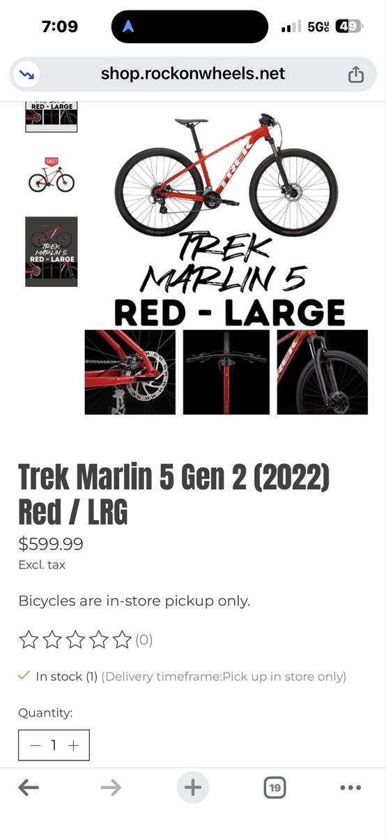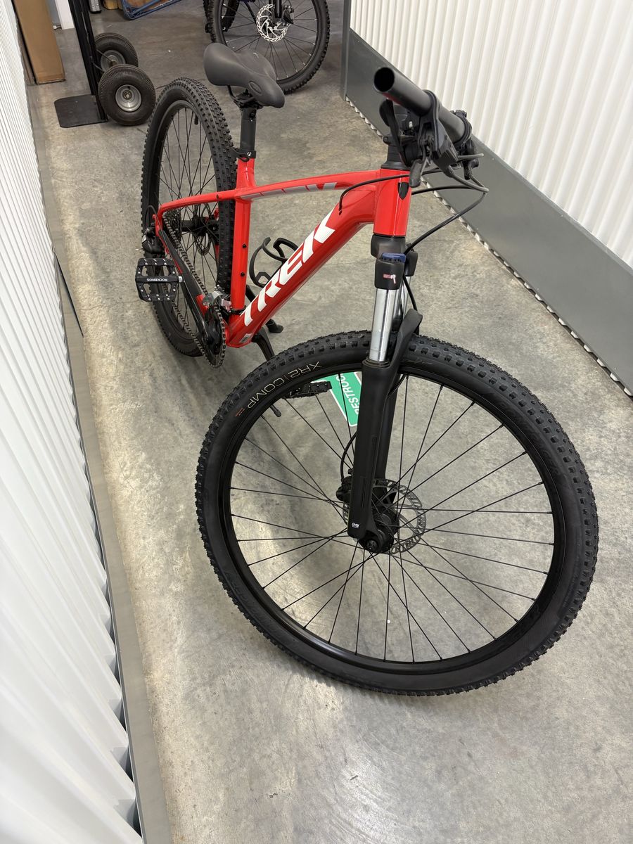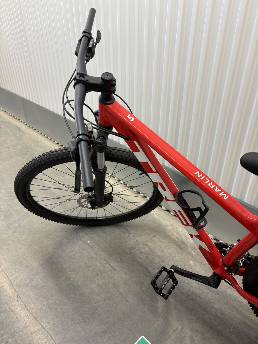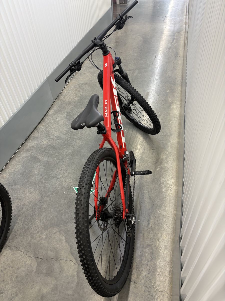 Trek Marlin 5, 29 inch large frame. New never been used, or ridden, just has been sitting in a climate controlled storage unit. A few upgrades which include a gel seat, pegged pedals and Tannus Armor for the tires. Shiny and new just like off of the show room floor. Ready to ride