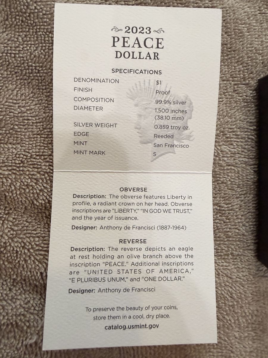 VenmoIn my opinion this is the most beautiful modern silver coin in existence. The clear mirror Lady Liberty pops on this coin. It is a brand new 2023 coin with no signs or wear on the coin, capsule or original packaging. It is made of fine .999 silver. I can meet in person in the Riverton/Herran area for the sale.