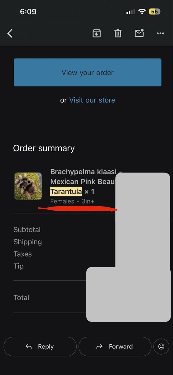 VenmoPurchased as confirmed female from urban tarantulas. I can show you the order confirmation. 3 1/2”