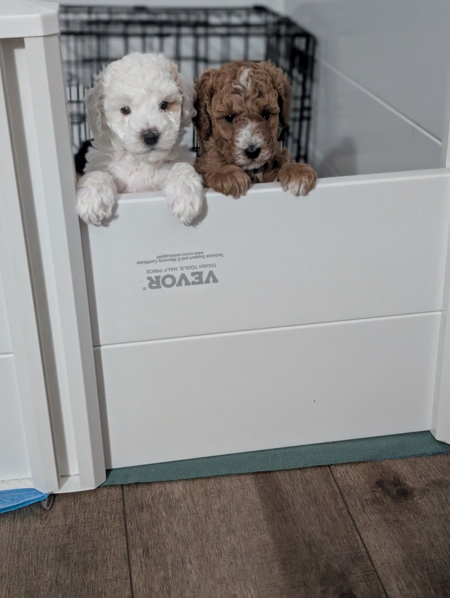 We had a litter of 6 poodles born on February 21st and they are 9 weeks old now and ready for new homes. This is the second litter between these parents and the last litter was absolutely amazing! We have received amazing reviews from their families. We have 2 males still available from this litter and we expect for them to be about 15lbs full grown. Their tails have been left natural.