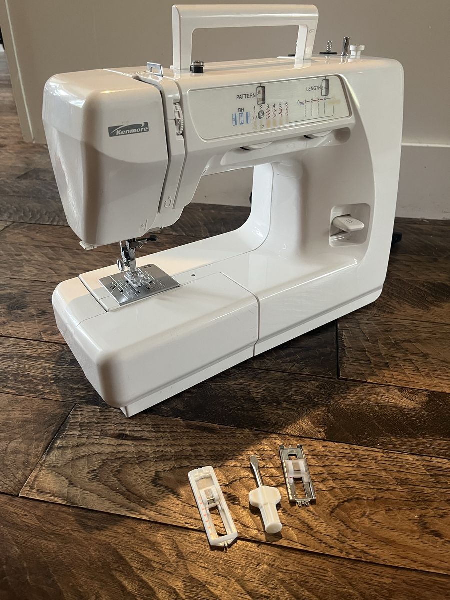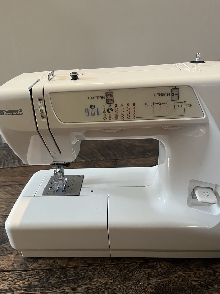 12 stitch Kenmore Sewing machine sews like new, no tension issues. Sews very nicely, evenly balanced stitches. I’ve cleaned and oiled it. The accessory tray is a little loose but doesn’t interfere with sewing. Smoke free home. (*Kenmore sewing machines that start with model 385, including this one, are made by Janome)
