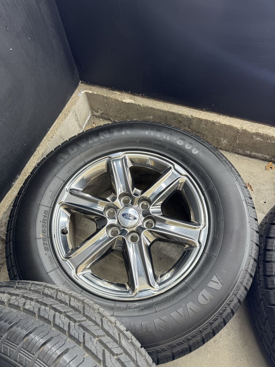 18” Ford F-150 wheels,tires, and tpms, All center caps are included. No curb rash or major damage. Tires are LIKE NEW 275/65r18 ADVANTA H/T top of the line tires, with like new tread remaining only 2000 MILES on them