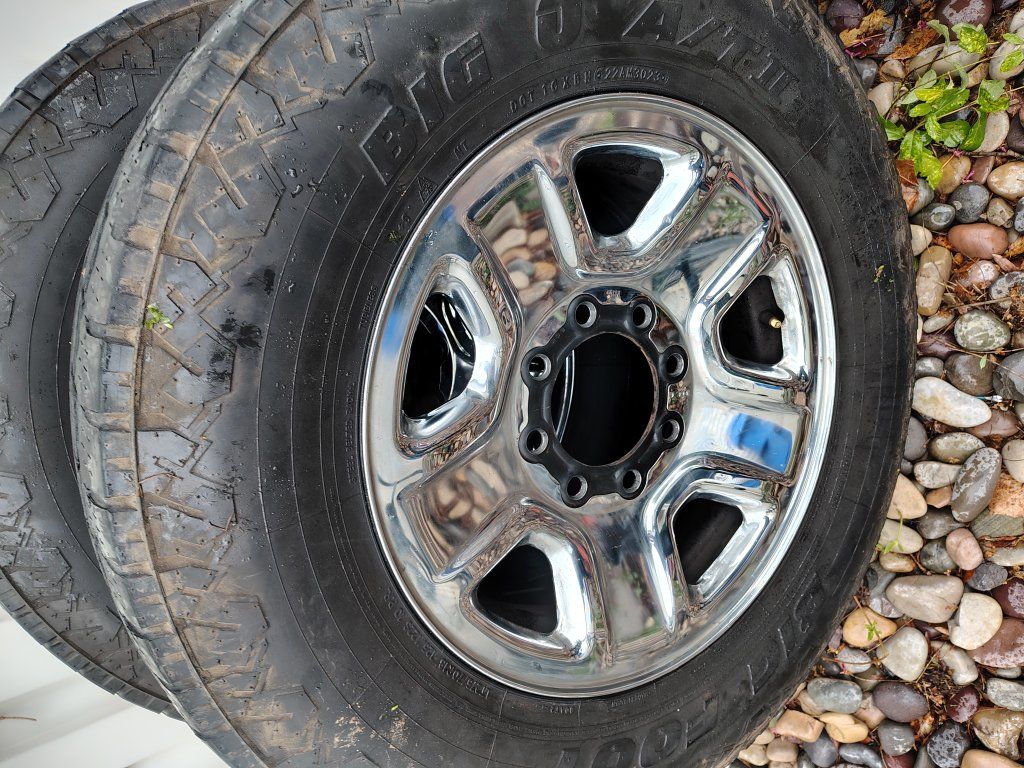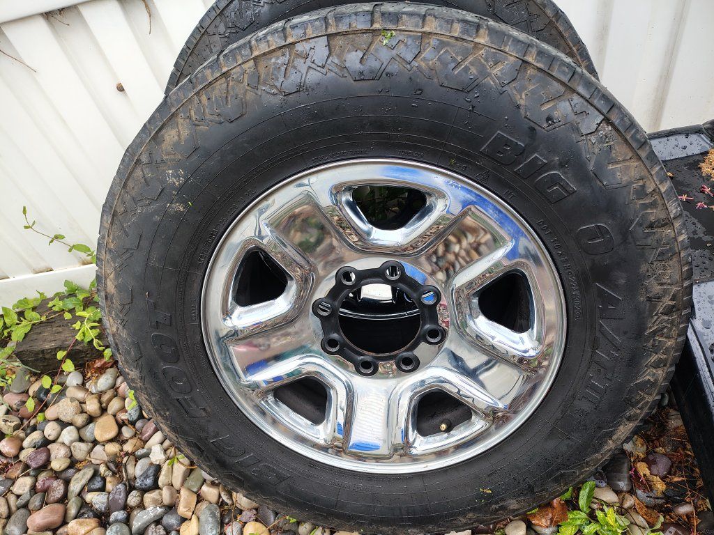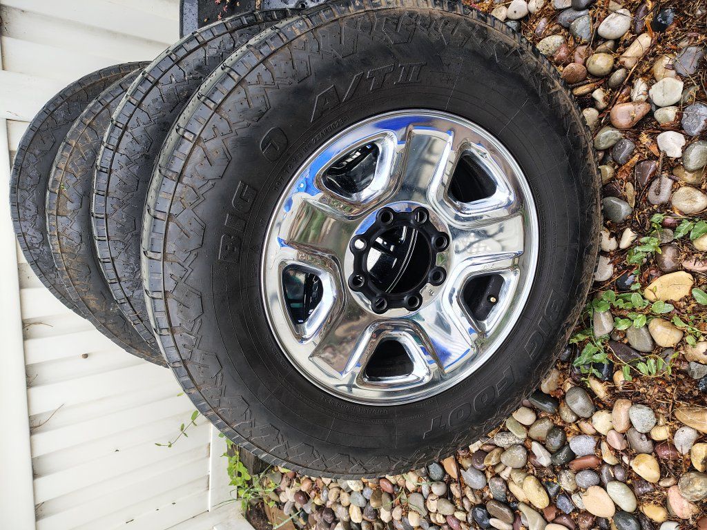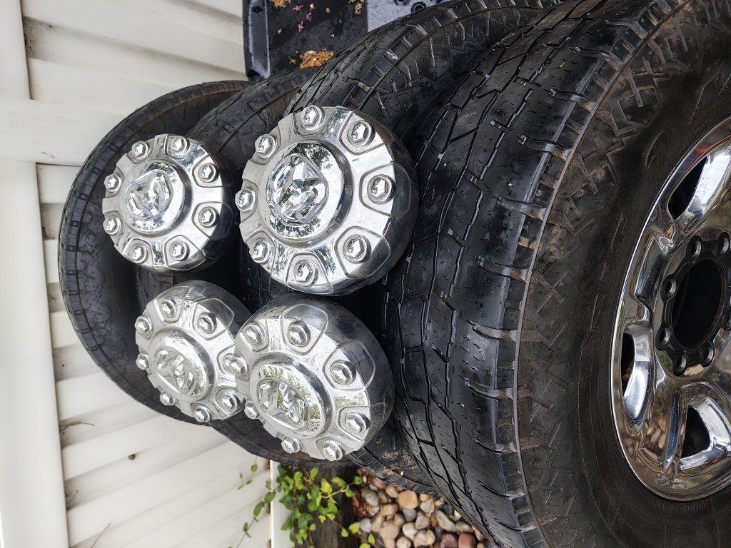 4-18" Ram 2500/3500 chrome wheels 8x165.1 / 8x6.5 from a Tradesman. Good shape and comes with all 4 centercaps. Have lug nuts if you need.