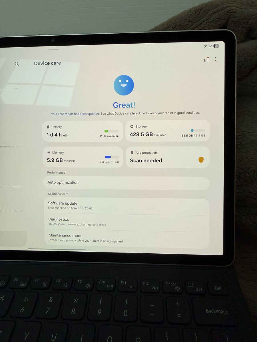 It has upgraded storage (512GB). This is WiFi version (non cellular). Color is: Platinum Silver. Screen is antiglare and the whole tablet (but not keyboard) is IP68 rated. It runs the latest version of Android and is very fast.